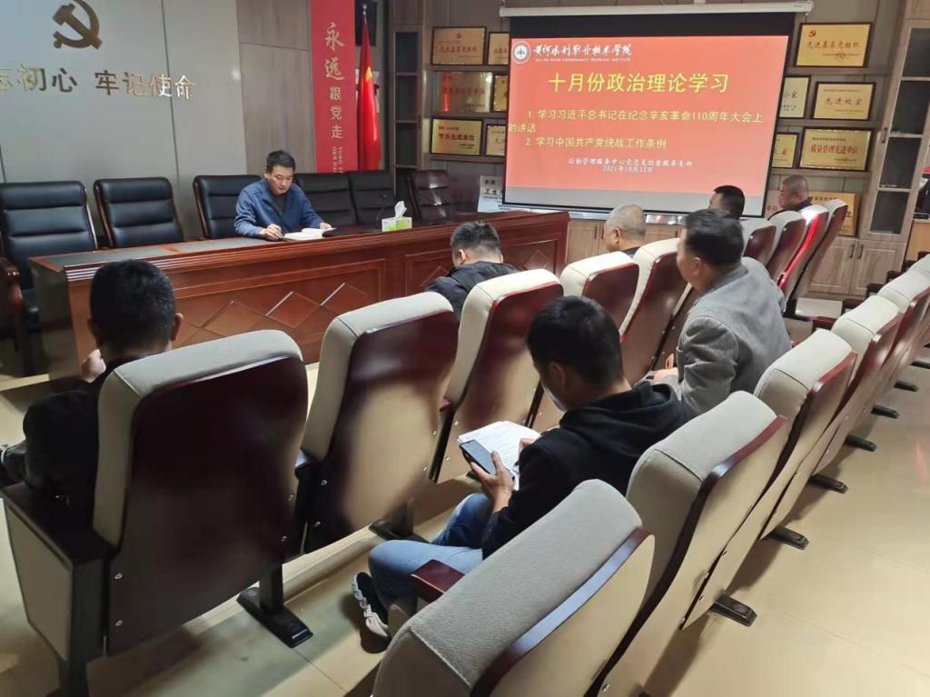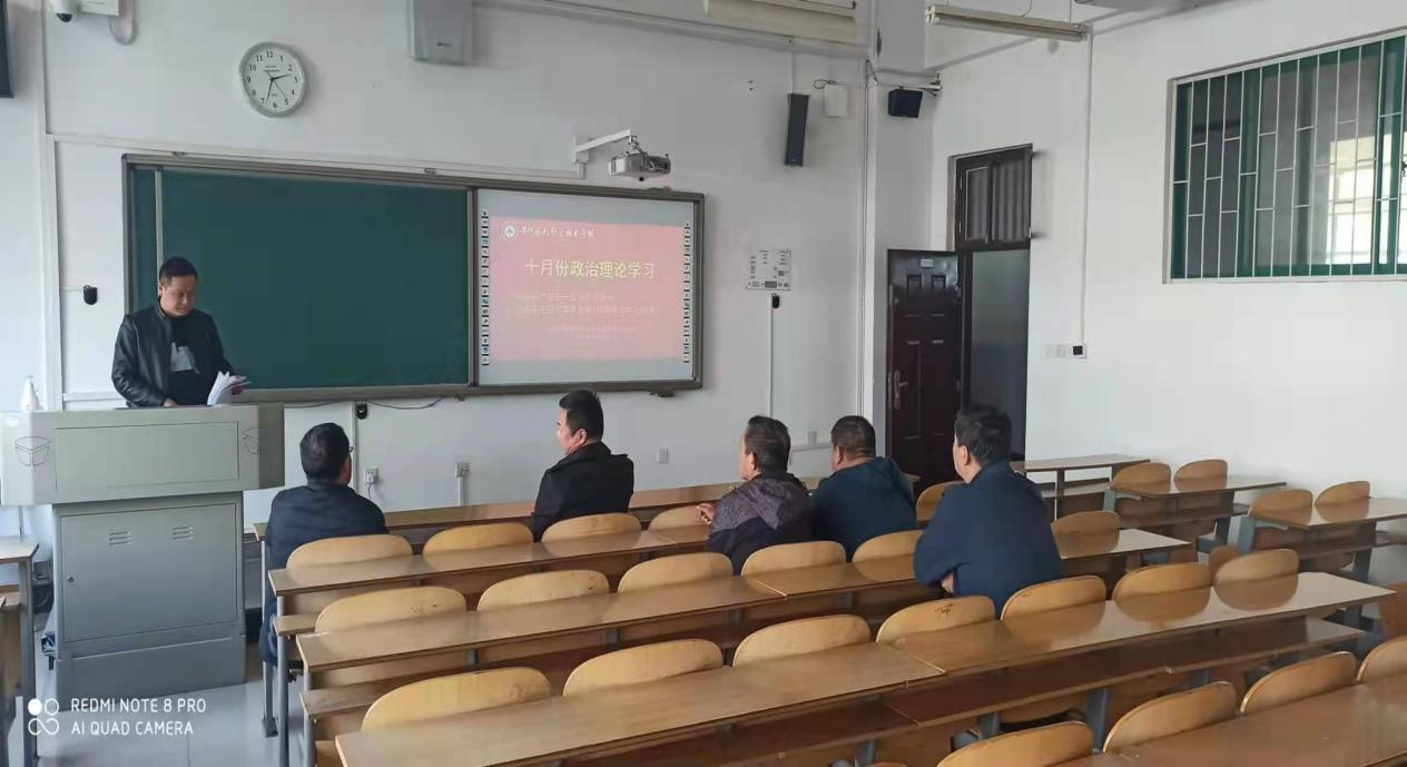 根据学校政治理论学习安排部署,后勤管理服务中心党总支维修绿化、医务保健、饮食服务党支部于10月12日组织十月份政治理论学习,内容围绕习近平总书记在纪念辛亥革命110周年大会上的讲话和《中国共产党统战工作条例》两个内容进行,学习活动由各支部书记主持,支部全体党员参加。
