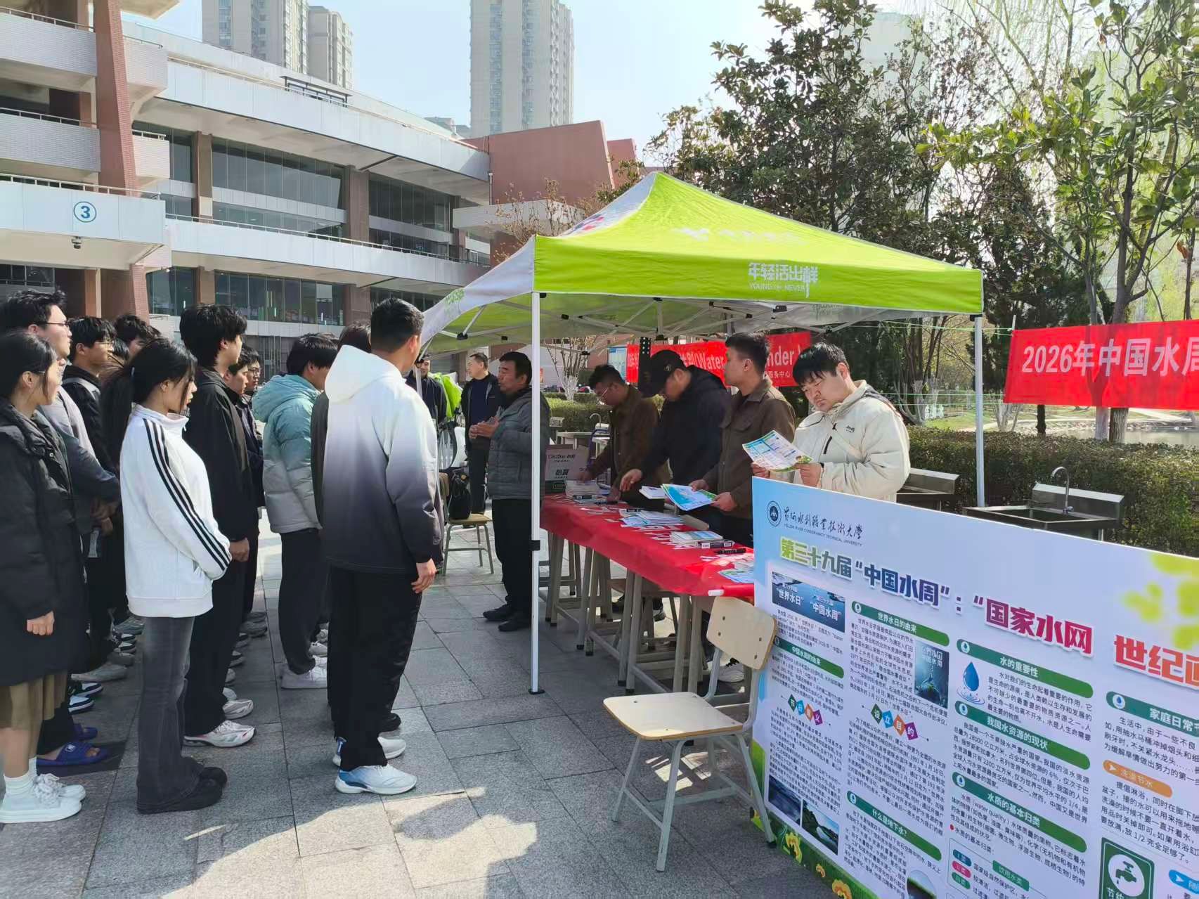 活动现场,后勤管理服务中心党总支书记管欣向广大学生生动解读2026年“世界水日、中国水周”主题内涵和水资源现状及节水护水的重要意义,并号召广大同学积极参与到“节水、护水、爱水”的行动中来,活动现场还向同学们发放了宣传彩页并组织同学们开展节水倡议签名。