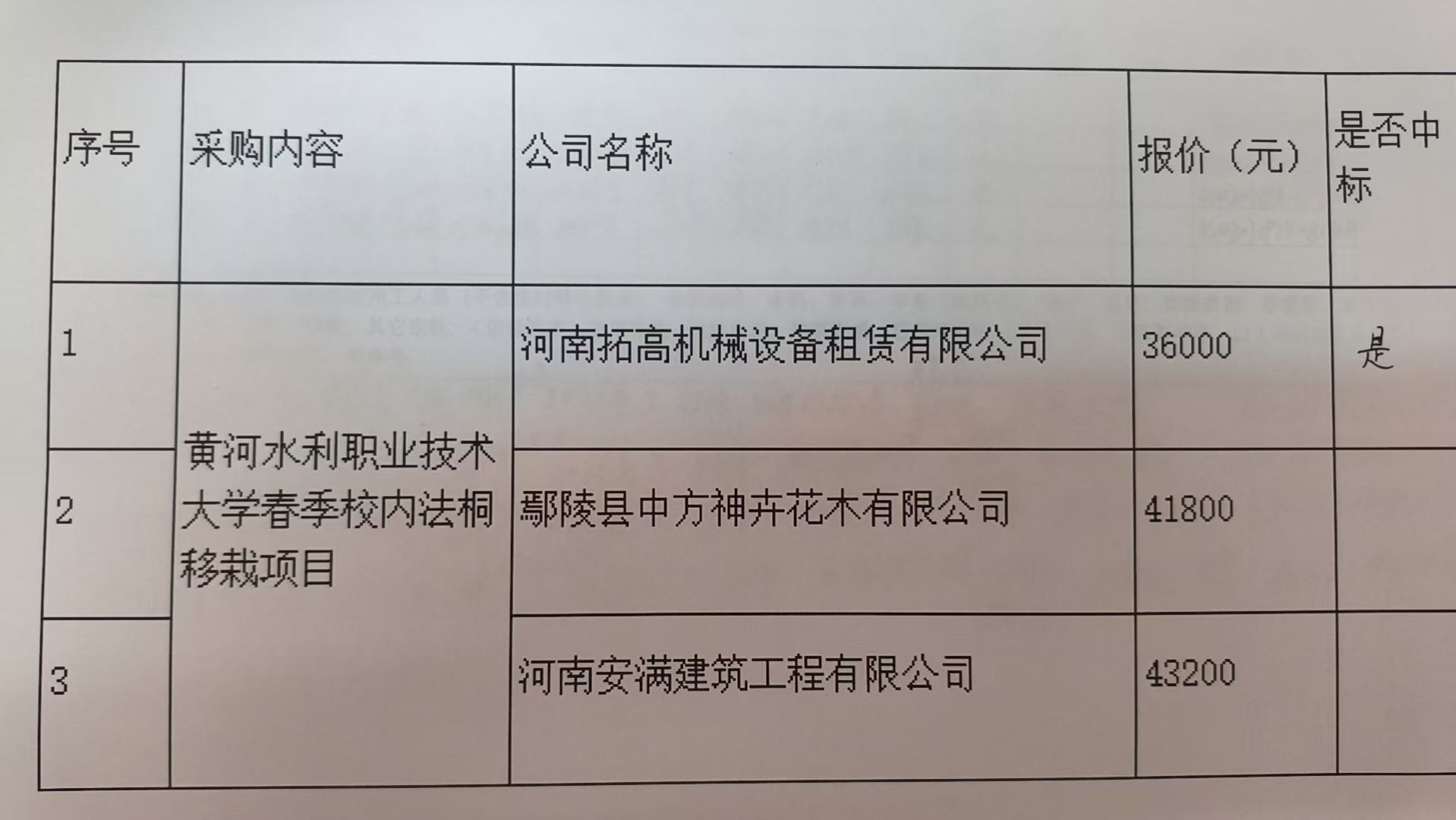 (2)采购内容:黄河水利职业技术大学春季校内法桐移栽项目,采购范围主要配合基建办公室完成8-10号新建教学楼区域法桐移栽等。