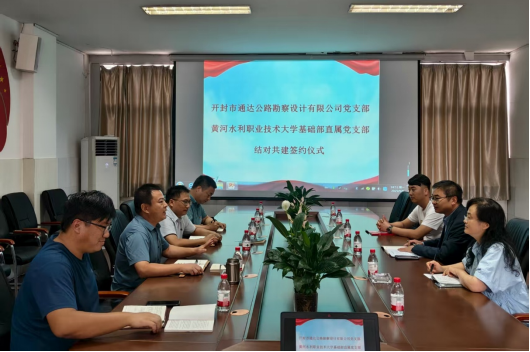 最后,基础部直属党支部书记刘盎与开封市通达公路勘察设计有限公司党支部书记冯明硕共同签署了党建结对共建协议书。
