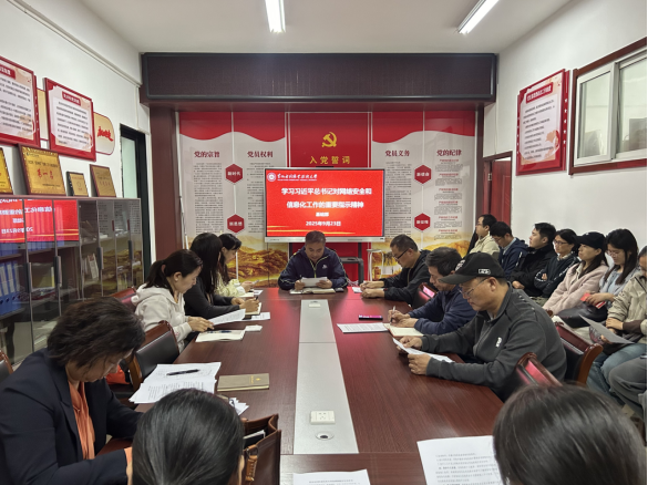 为深入贯彻党中央网络强国重要思想,切实提升教职工网络安全意识与履职能力,2025年9月23日,基础部组织全体教职工学习习近平总书记对网络安全和信息化工作作出的重要指示精神,基础部主任刘盎主持会议。