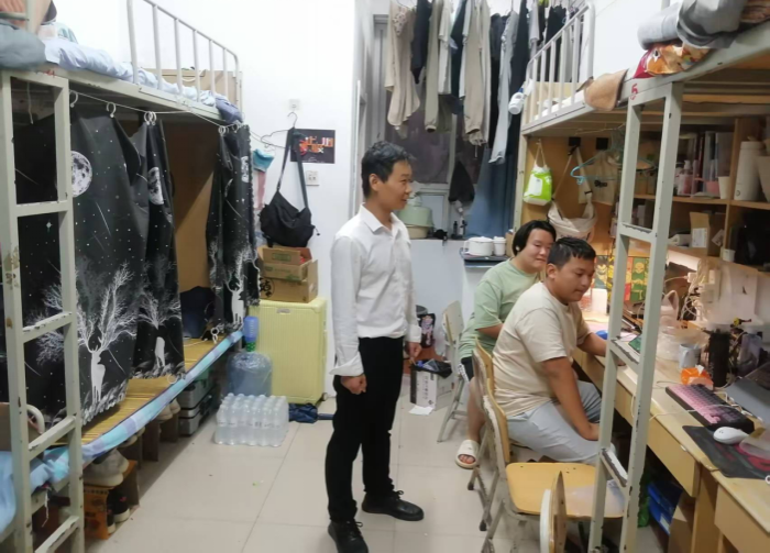 当晚,院党总支书记杨彦涛、副书记张嫚带队深入学生宿舍,走访慰问暑期返校学生。走访期间,学院领导与同学们亲切交流,细致了解大家暑期生活、学业进展及新学期规划,并认真听取同学们的意见与需求,叮嘱同学们要不断增强安全意识,保持规律作息,以积极饱满的状态迎接新学期的挑战。此次走访不仅拉近了师生距离,也让学生深切感受到学院的温暖与关怀,为新学期营造了和谐温馨的育人氛围。