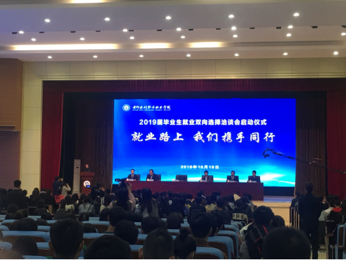 2018年10月19日,我校召开首场毕业生双向选择洽谈会。祝玉华校长在启动仪式上做开场发言,肯定我院毕业生就业工作取得的成绩,对本届毕业生的就业前景充满期待,鼓励同学们用所学知识回报母校,回报社会,以更加优异的工作成绩献礼我校90周年华诞。