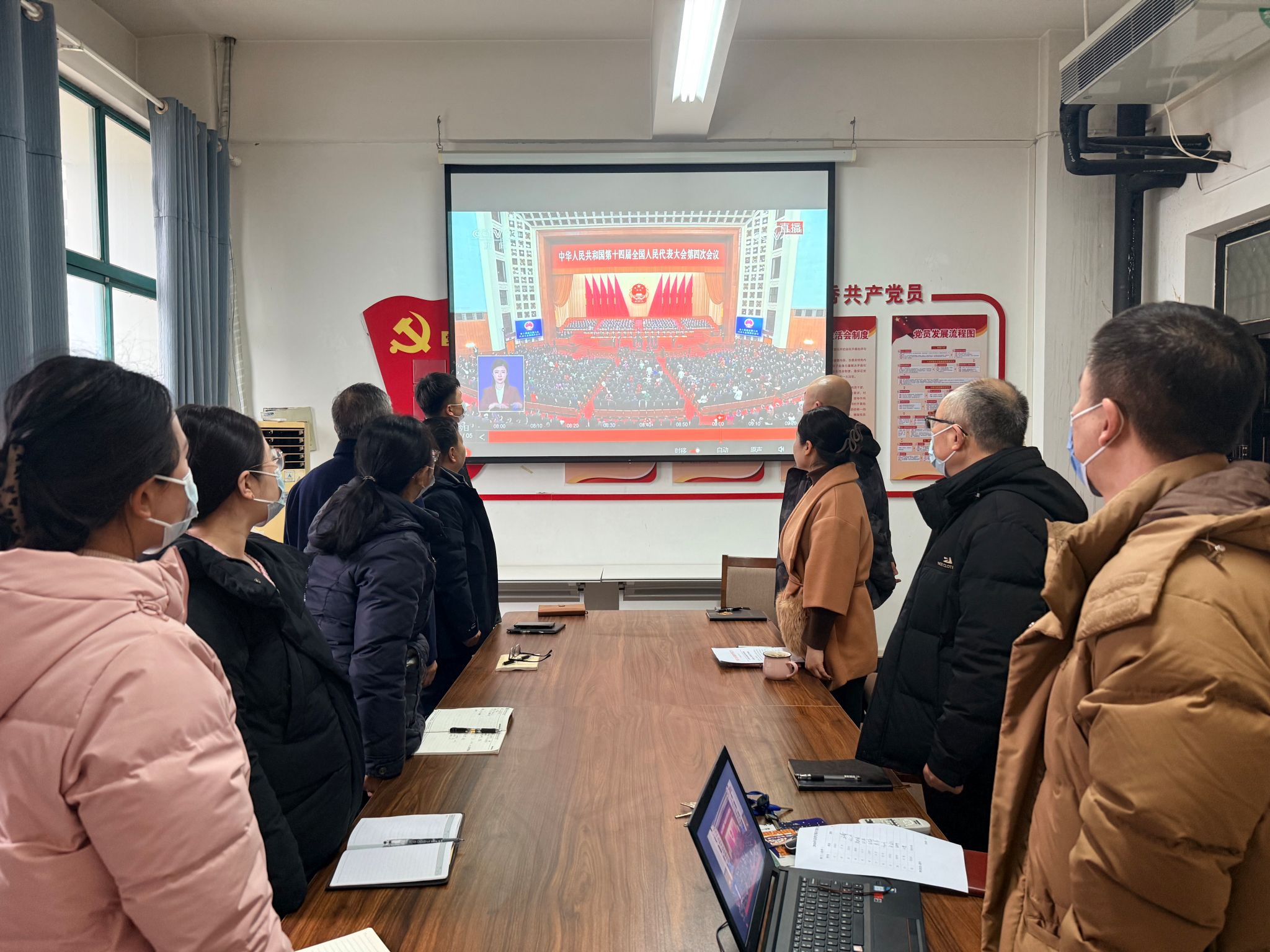 3月5日,继续教育学院在4号教学楼四楼会议室组织全体教职工集中收看十四届全国人大四次会议开幕式,认真聆听国务院总理所作的政府工作报告。会议由学院院长薛建荣主持,全体教职工参加学习。