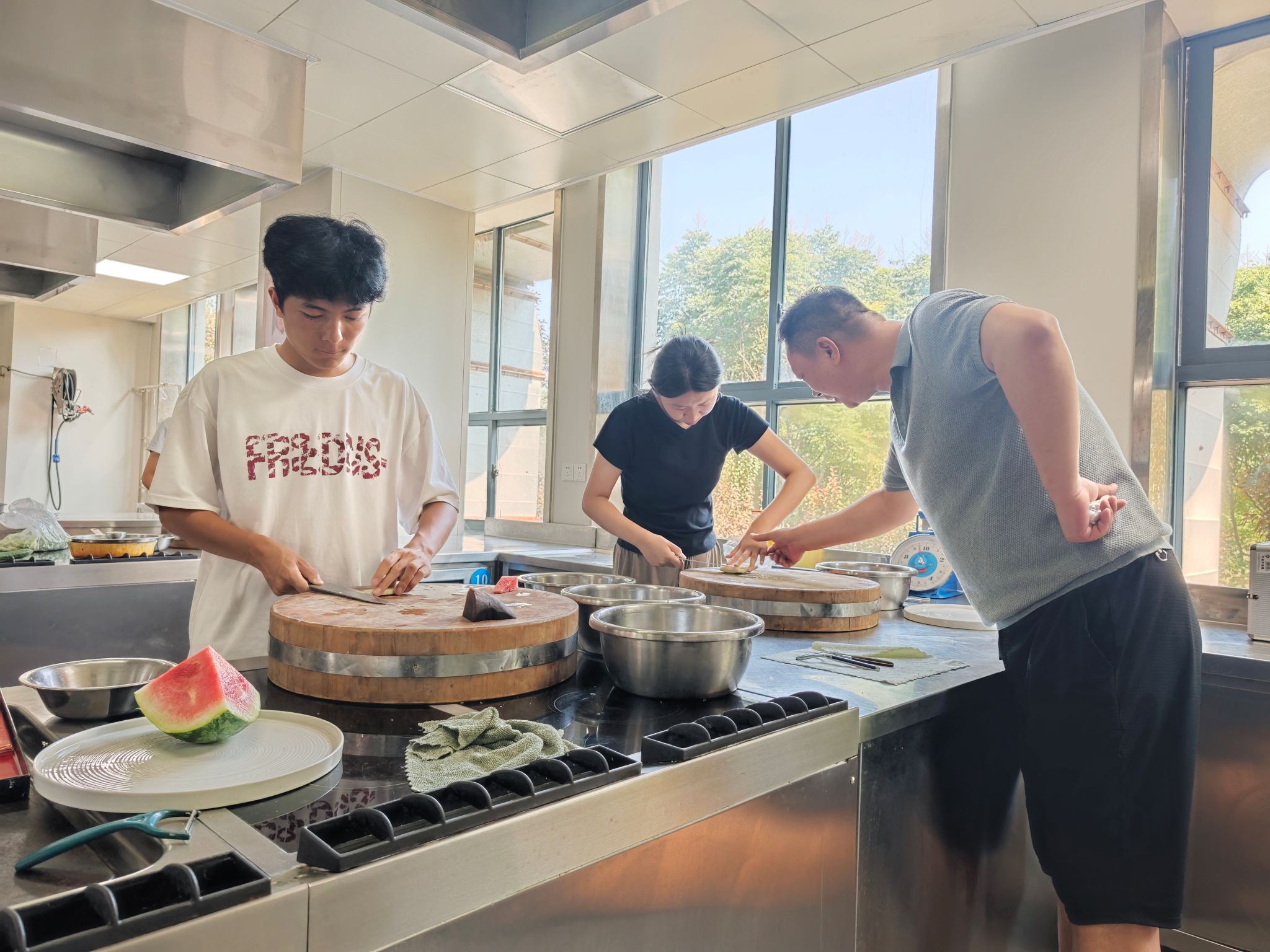 7月31日,拥有丰富酒店后厨实战经验的厨师长赵红宾老师加入指导行列。在菜品精进的关键阶段,他以行业一线的高标准,对学生在食材处理、火候掌控、菜品呈现等环节提出了极具针对性的改进意见,尤其强调“细节决定成败”,引导学生在精益求精中提升菜品品质。
