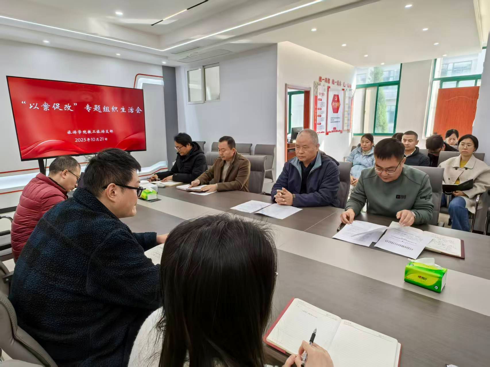 10月21日下午,旅游学院党总支教工旅游支部在SX5204会议室召开“以案促改”专题组织生活会。党委副书记、工会主席杨士恒以普通党员身份参加,旅游学院党总支书记邹新忠主持会议。