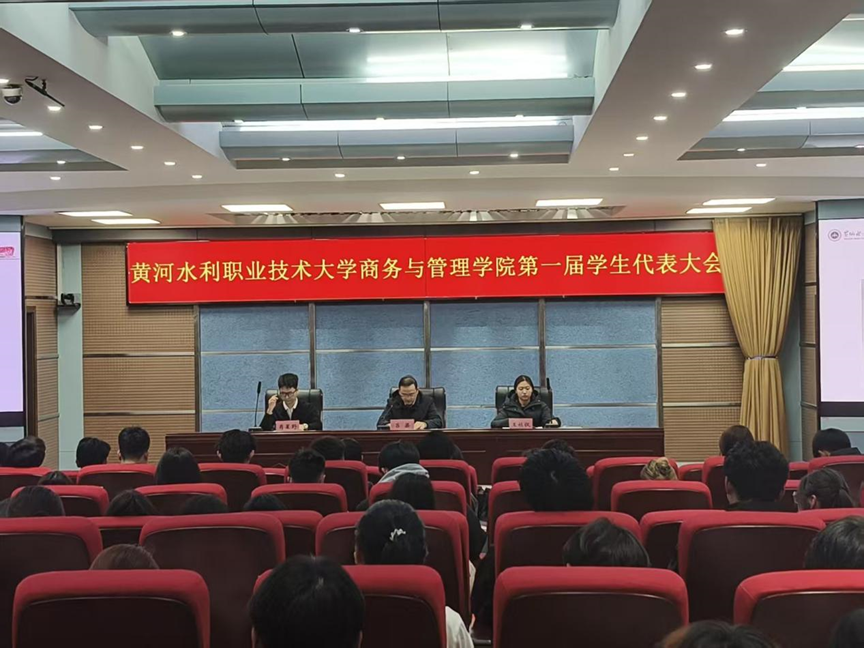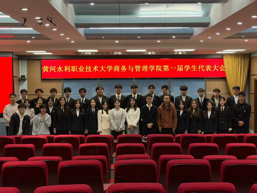 时序交替,华章新启。2025年12月30日下午,黄河水利职业技术大学商务与管理学院第一次学生代表大会在学术报告厅隆重举行。商务与管理学院院长吕梁、分团委书记肖星野、校学生会主席团成员王祯仪及全体辅导员出席会议,155名学生代表肩负全院学子重托,齐聚一堂,共商学院学生工作发展蓝图,擘画青年成长成才新路径。