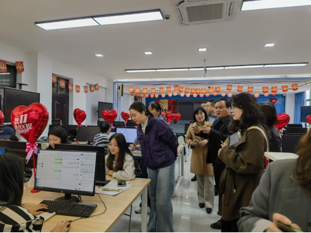 为了更直观地了解我院的实习实训情况,在我院陈永胜老师陪同下,杨中昭一行参观了我院的现代商务实训中心及校内生产实践项目开展情况。