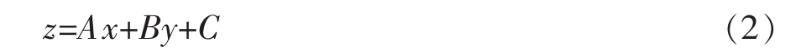 式中:x、y、z 为平面上任意一点的空间三维坐标;A、B、C 为反映平面法向的参数值。