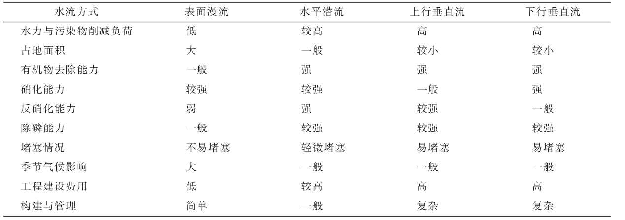 Tab.1 Process characteristics of constructed wetland under different water flow modes