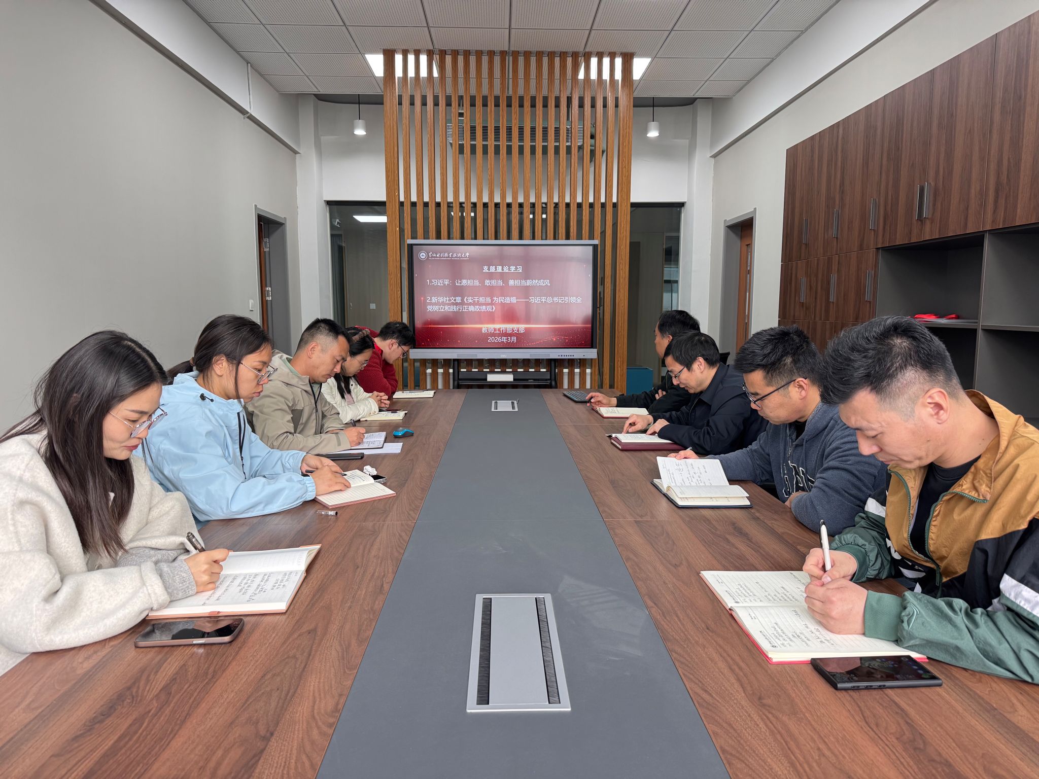 会上,范龙领学了《习近平关于树立和践行正确政绩观论述摘编》部分章节、习近平总书记重要文章《让愿担当、敢担当、善担当蔚然成风》和新华社文章《实干担当、为民造福——习近平总书记引领全党树立和践行正确政绩观》。全体人员结合工作实际,围绕如何将正确政绩观融入人才引进、培养、考核全流程展开深入研讨,一致认为要始终以服务学校教育事业发展作为个人工作的根本出发点和落脚点。