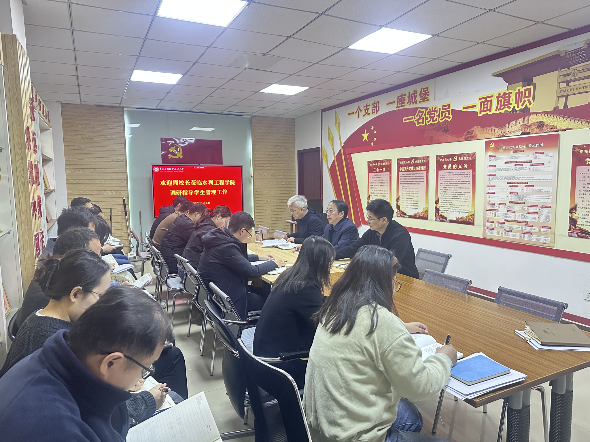 11月6日上午,副校长周志琦在学生工作部部长商坤陪同下,深入水利工程学院调研指导学生管理工作。学院党总支书记王建设、副书记李建及全体辅导员参加调研座谈。