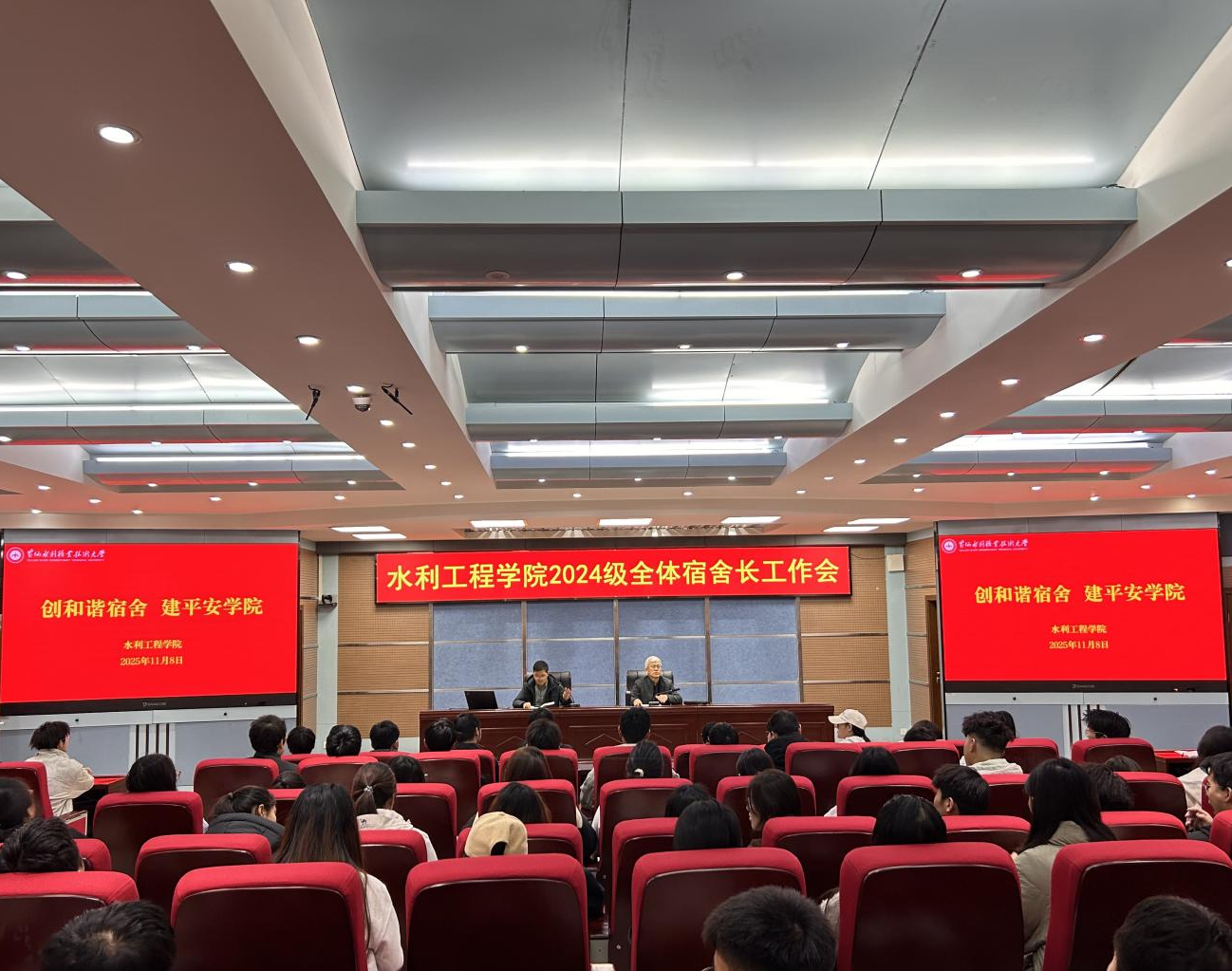 为切实打通学生思想政治引领与安全稳定工作的“最后一米”,2025年11月8日上午,水利工程学院连续组织召开两场全体宿舍长专题会议。会议由党总支副书记李建主持,党总支书记王建设主讲,全面覆盖2024级(外出实习除外)及2025级全体宿舍长。会议围绕“创和谐宿舍、建平安学院”主题展开,旨在强化基层管理、压实网格责任。