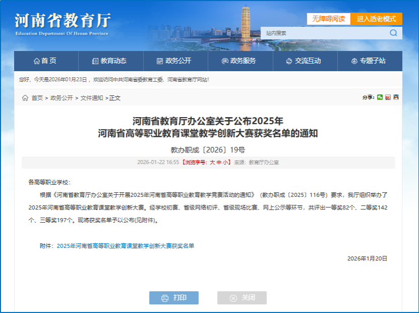 近日,“2025年河南省高等职业院校课堂教学创新大赛”结果揭晓,我院韩晓育老师凭借扎实的专业功底、创新的教学设计与精彩的课堂呈现,在全省600余名参赛选手中脱颖而出,斩获二等奖,为学院赢得荣誉。