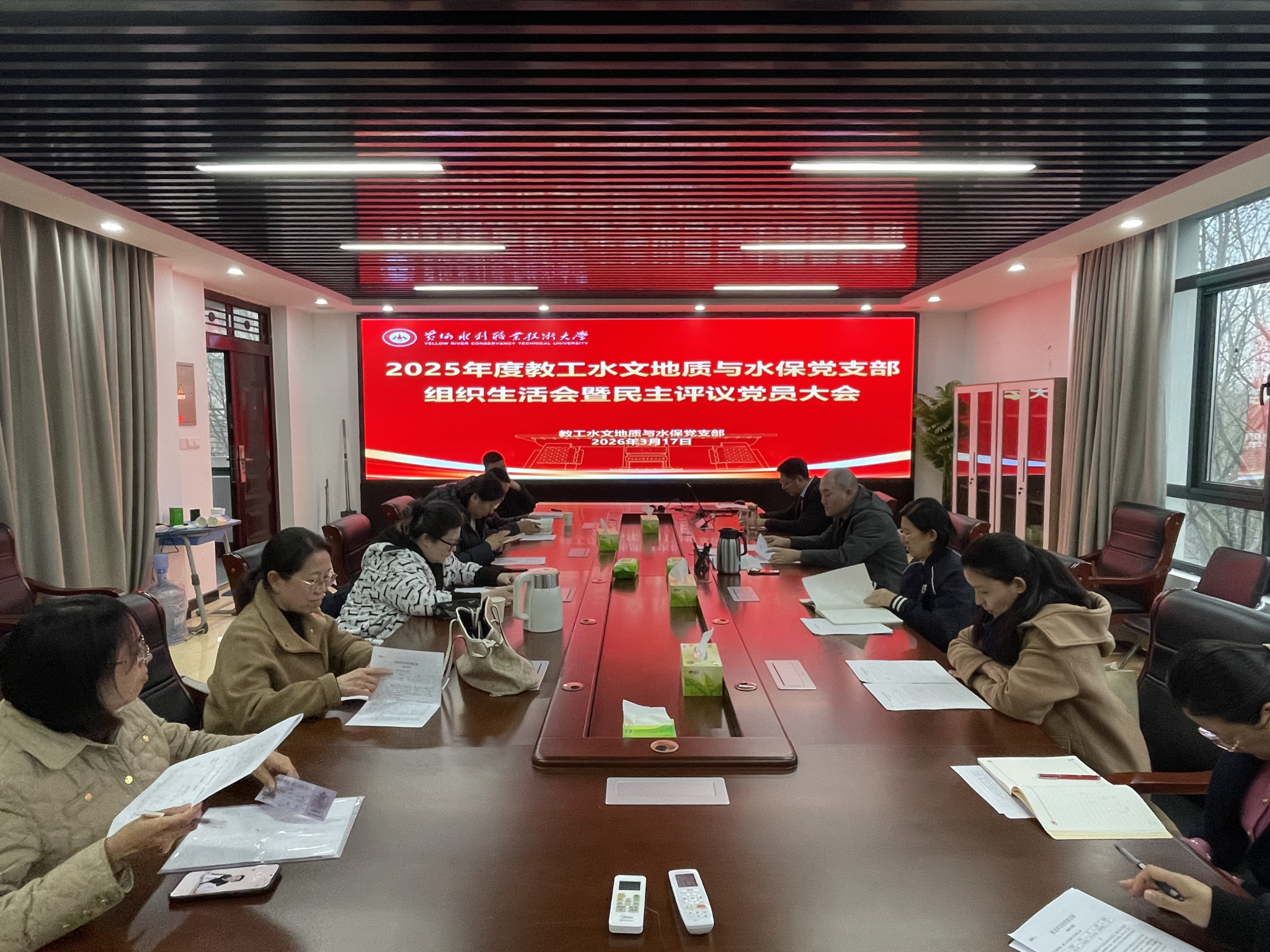 2026年3月17日下午,教工水文地质与水保党支部在SY3319召开2025年度组织生活会暨民主评议党员大会。