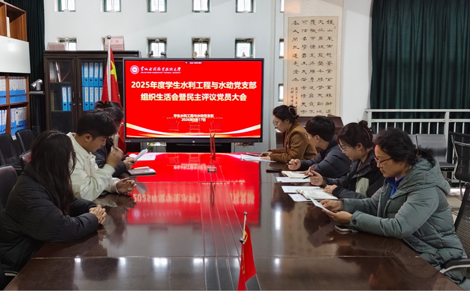 3月17日下午,学生水利工程与水动党支部在sy3310召开2025年度组织生活会暨民主评议党员大会,会议由党支部书记祁航主持,全体在校党员参加会议。