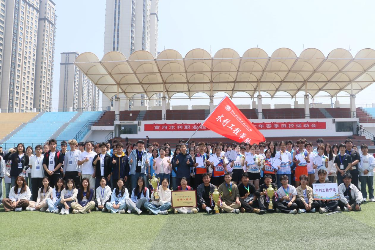 4月17日上午,黄河水利职业技术大学2026年春季田径运动会圆满闭幕。水利工程学院全体师生奋勇争先,一举斩获女子团体第一、男子团体第一、团体总分第一名,并荣膺精神文明奖,实现“三冠加冕”。