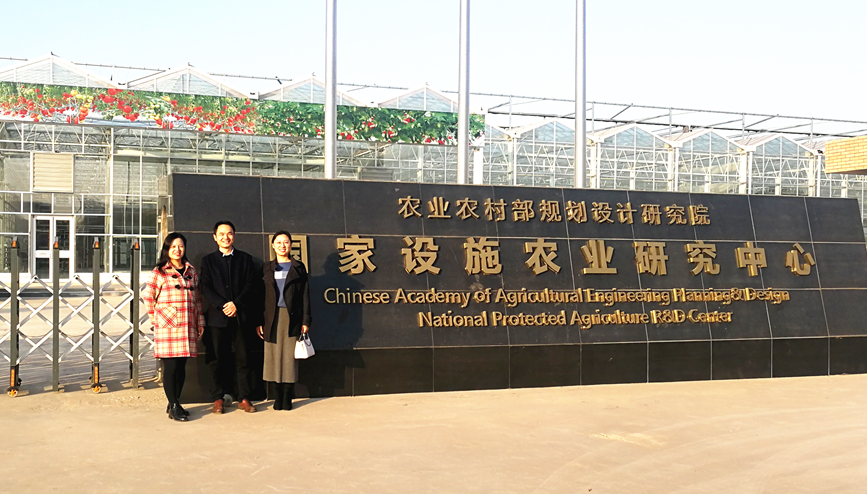 为了更好地建设河南省农业水资源高效利用实训室和水润万物萌创工厂创客空间项目,提高水利工程学院相关专业办学条件,副院长冯峰和张芳博士受农业农村部规划设计研究院国家设施农业工程技术研究中心邀请,于2019年11月7日赴国家设施农业研究中心永清试验基地开展调研。