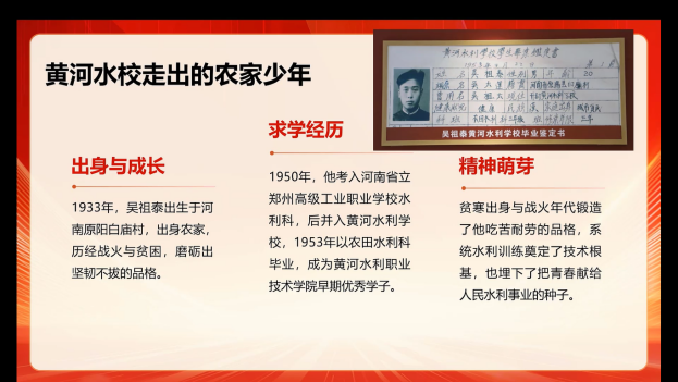 本次联建以“学先贤承河山正气·攻难关建标杆工程”为主题,通过视频录制、资料共享等线上渠道,实现了两地党组织的异步联动与深度交流。项目部党支部在施工间隙组织集体学习,学院支部结合教学安排开展专题研讨,共同学习了《河山正气——中国治水代表人物吴祖泰廉洁故事》。吴祖泰同志献身水利事业的感人事迹与红旗渠精神的时代价值,在跨时空交流中引发强烈共鸣。