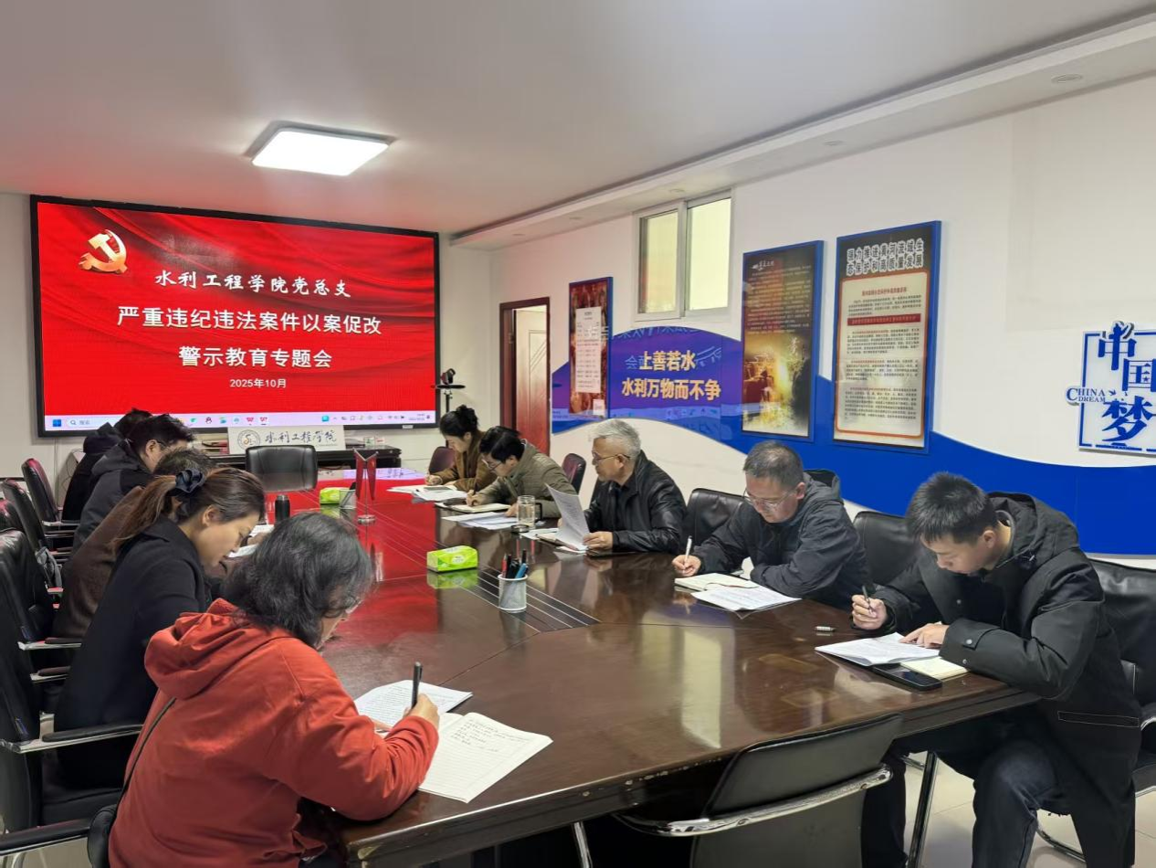 10月21日,水利工程学院在SX5312会议室召开严重违纪违法案件以案促改警示教育专题会,党总支书记王建设、总支委员、各支部书记参加会议,会议由党总支副书记李建主持。