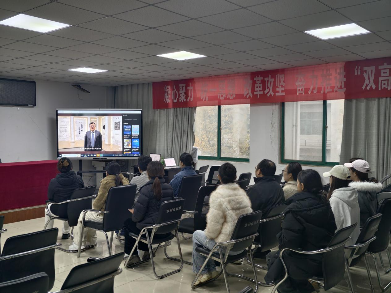 11月7日16:00,水利工程学院四个学生党支部在实训5310会议室集中观看2025年高校党组织示范微党课第七讲《以高水平教育对外开放 答好强国建设时代命题》,全体在校师生党员参加。
