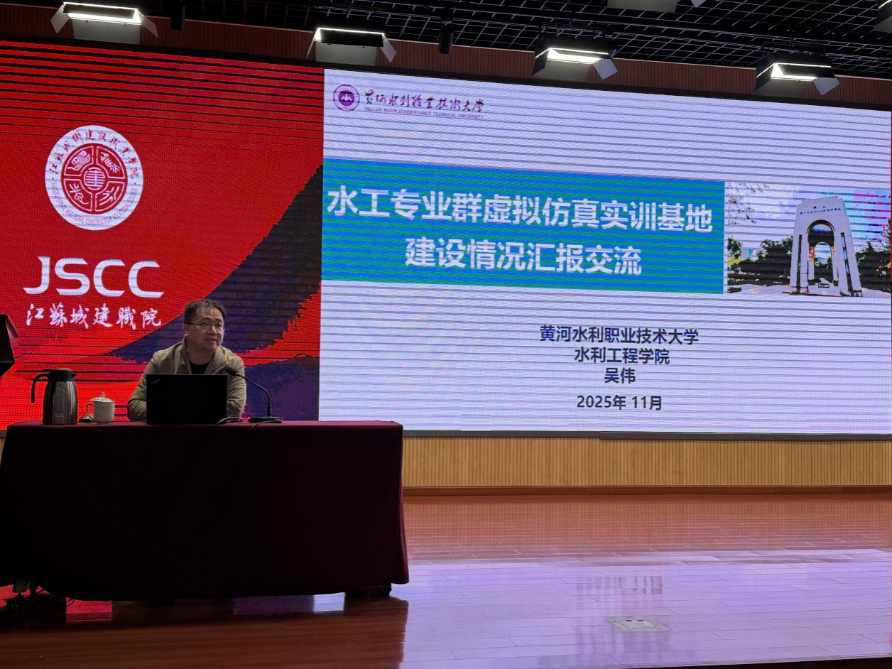 11月26日,应江苏城乡建设职业学院邀请,“强国行”专项行动团队成员吴伟老师赴该校参加“智赋未来·AI与虚拟仿真驱动教学革新”系列专题讲座,就虚拟仿真实训基地建设作主题报告。交流活动设于该校行政楼一楼报告厅,全校教师参与学习。