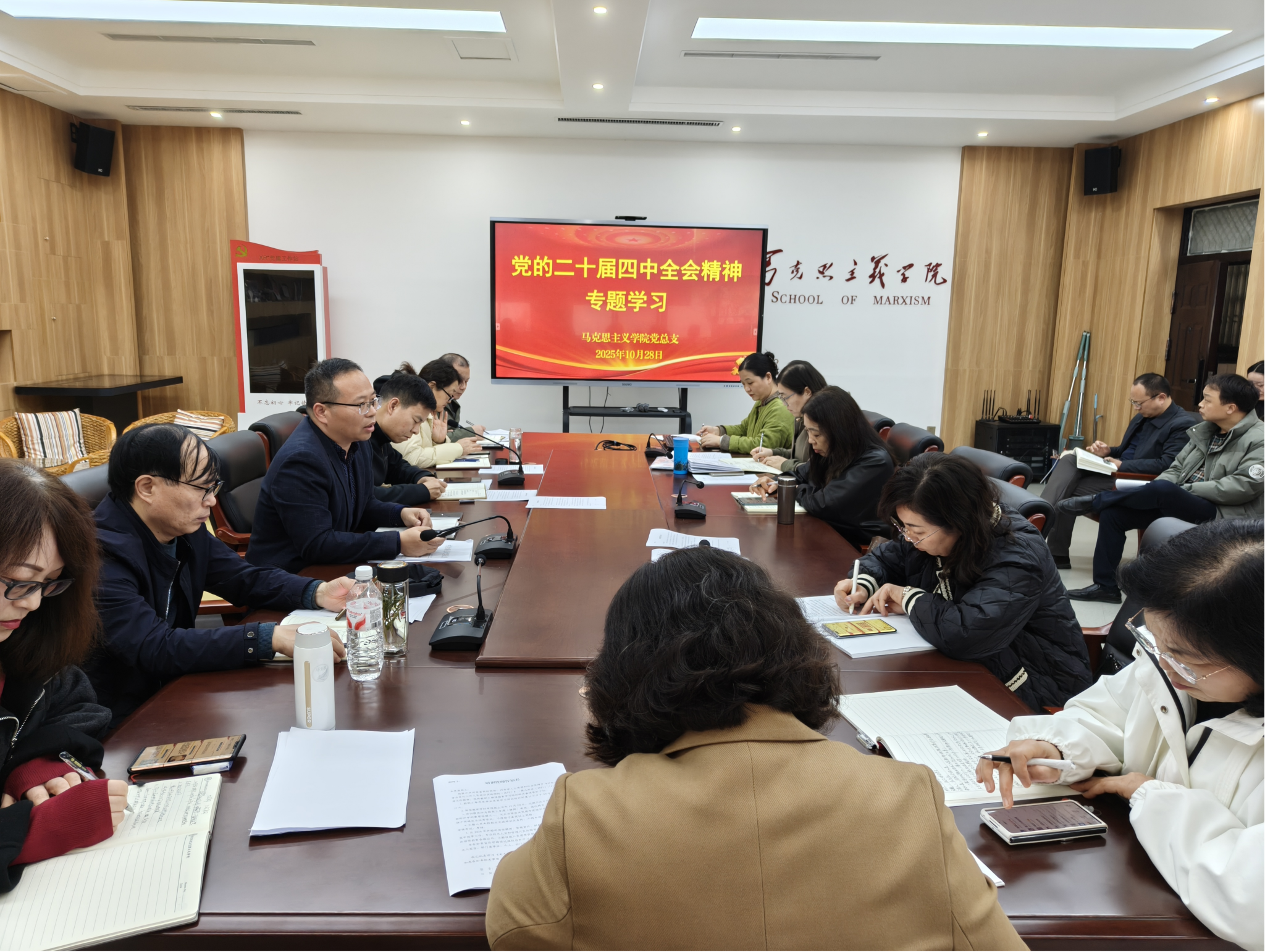 10月28日下午,马克思主义学院在会议室召开全体党员会议,专题学习党的二十届四中全会精神。