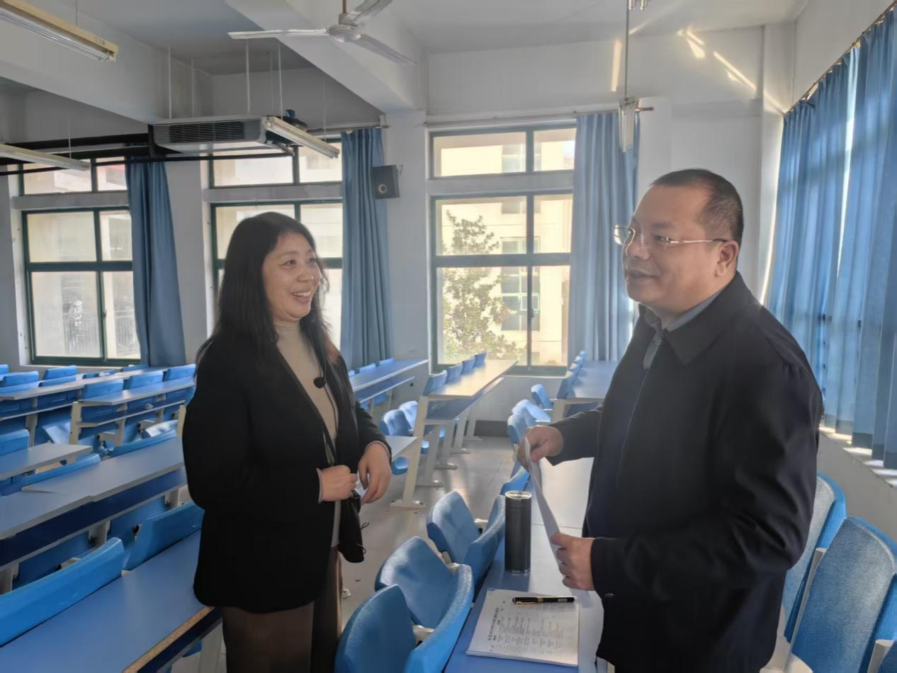 按照中共河南省委教育工委办公室 河南省教育厅办公室《关于开展2025年度全省高校秋季学期思政课“大听课 大调研”活动的通知》要求,11月19日上午,第六调研组专家河南理工大学马院党委书记洪振涛、河南科技学院马院院长王冰蔚、信阳农林学院马院党总支书记王晓明、河南应用技术职业学院马院院长张振华到我校开展思政课听课调研工作。马克思主义学院领导班子成员参与听课调研。