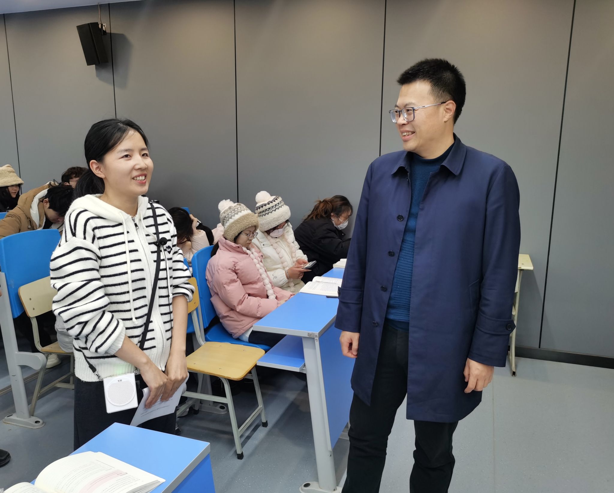 会前,胡昊深入思政课堂,随机听了马克思主义学院青年教师母延雪讲授的《毛泽东思想和中国特色社会主义理论体系概论》课,勉励青年教师要认真备课,将党的二十届四中全会精神融入思政课教学,以扎实的学识为学生讲好中国特色社会主义取得的举世瞩目成就。