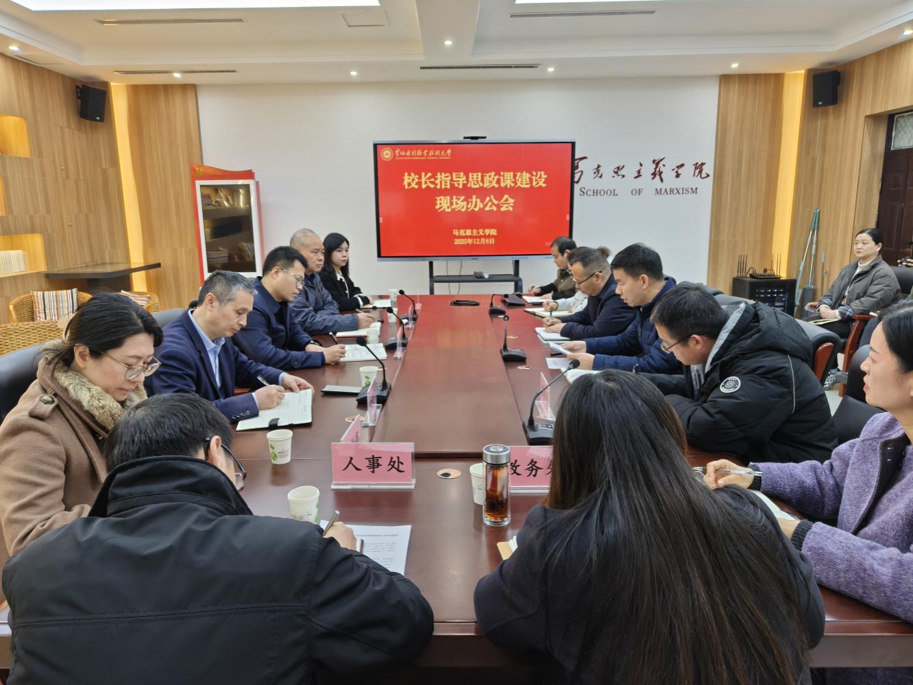 12月8日,党委副书记、校长胡昊深入思政课课堂听课评课,并主持召开现场办公会,调研指导省级示范马克思主义学院建设和思政课教学工作。党委副书记、工会主席杨士恒,副校长朱焕立出席会议,党政办、宣传部、教师工作部、教务处、科技处、国资处等职能部门负责人和马克思主义学院领导班子成员、骨干教师与会。