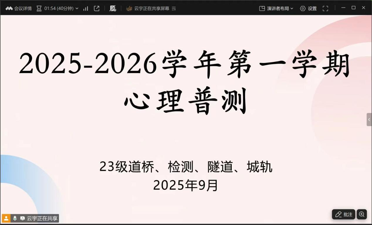 本次心理普测工作旨在科学评估学生心理状态,为后续开展精准心理支持与服务提供重要依据,助力学生以积极、健康的心态投入新学期的学习与生活。