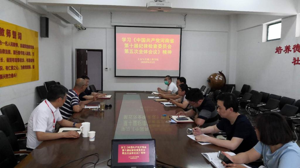 6月2日下午,土木与交通工程学院党总支班子开展集体学习活动,学习河南省第十届纪律检查委员会第五次全体会议精神,学习活动由党总支书记赵杰主持,党总支班子成员及各支部书记参加会议。