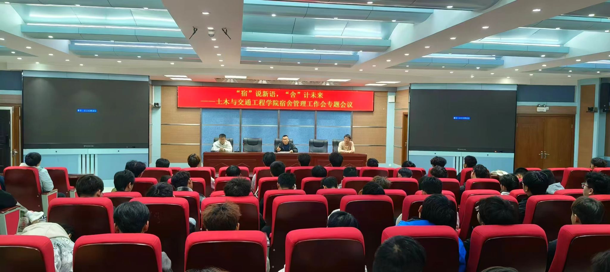 为夯实“三全育人”阵地,营造安全、文明、和谐、奋进的宿舍环境,助力学生强化宿舍管理意识,近日,土木与交通工程学院于3号实训楼报告厅召开宿舍管理工作专题会议。学院党总支副书记孟宪金、分团委书记牛贺洋、辅导员及全体宿舍长参加本次会议。