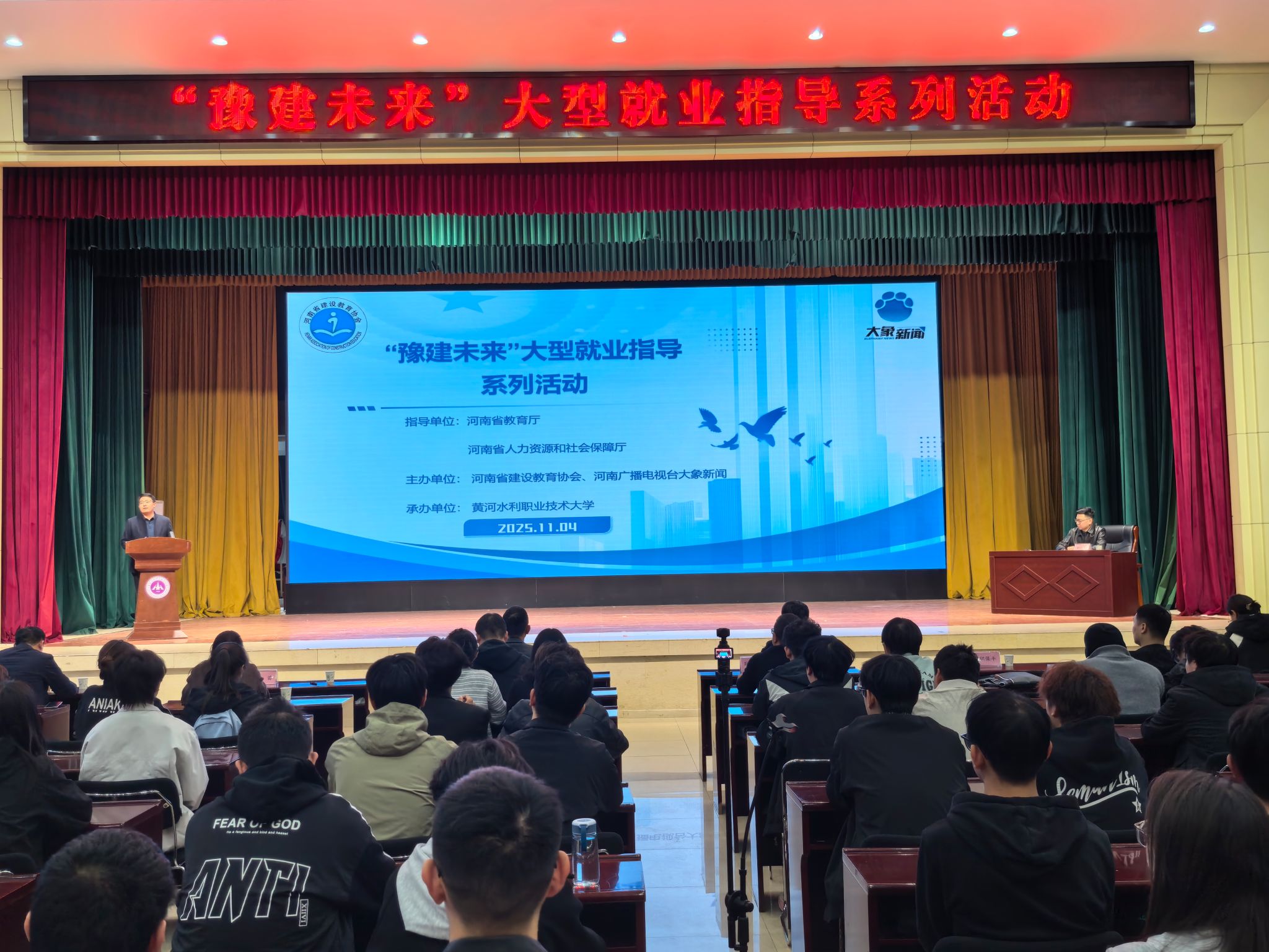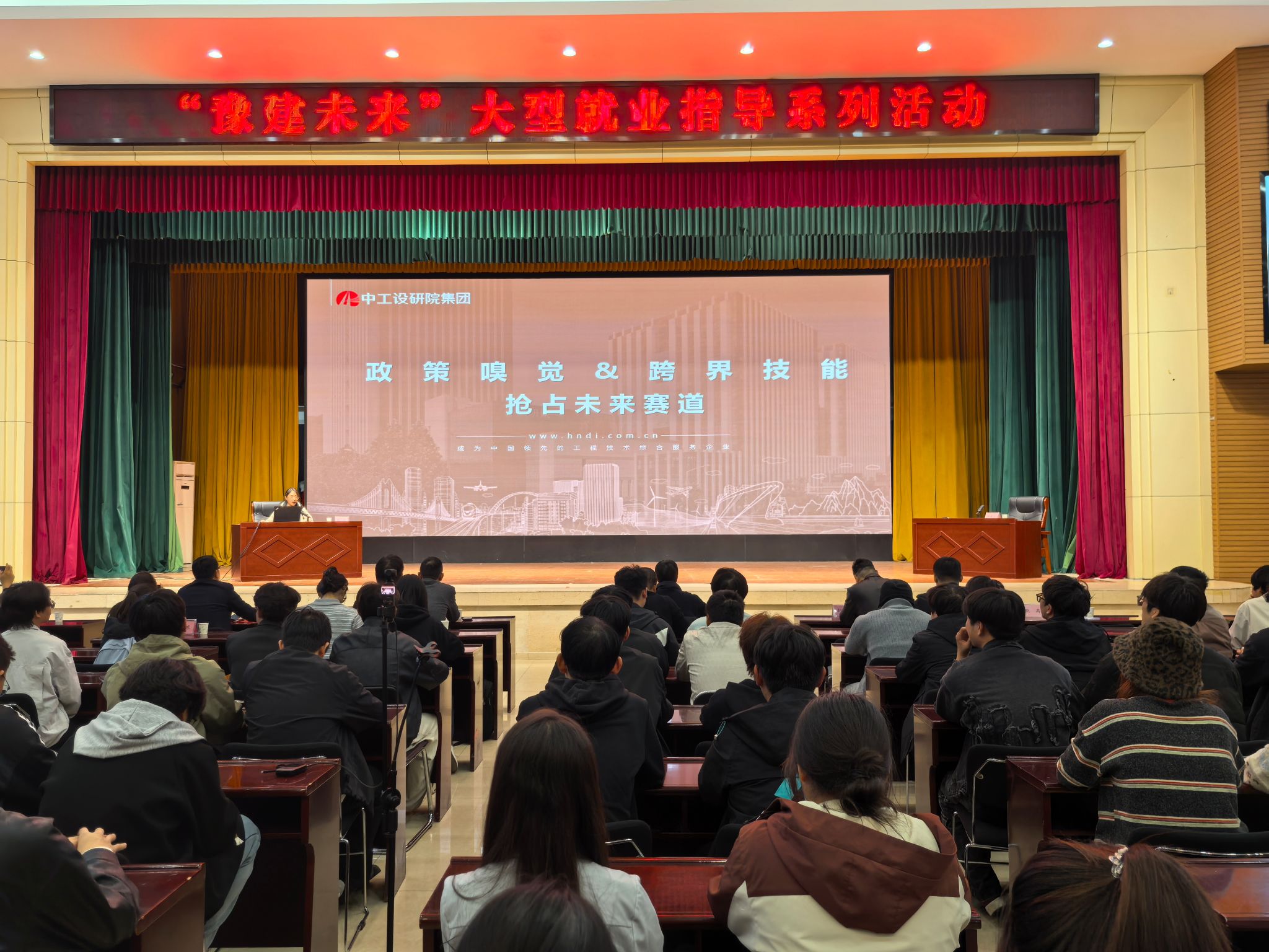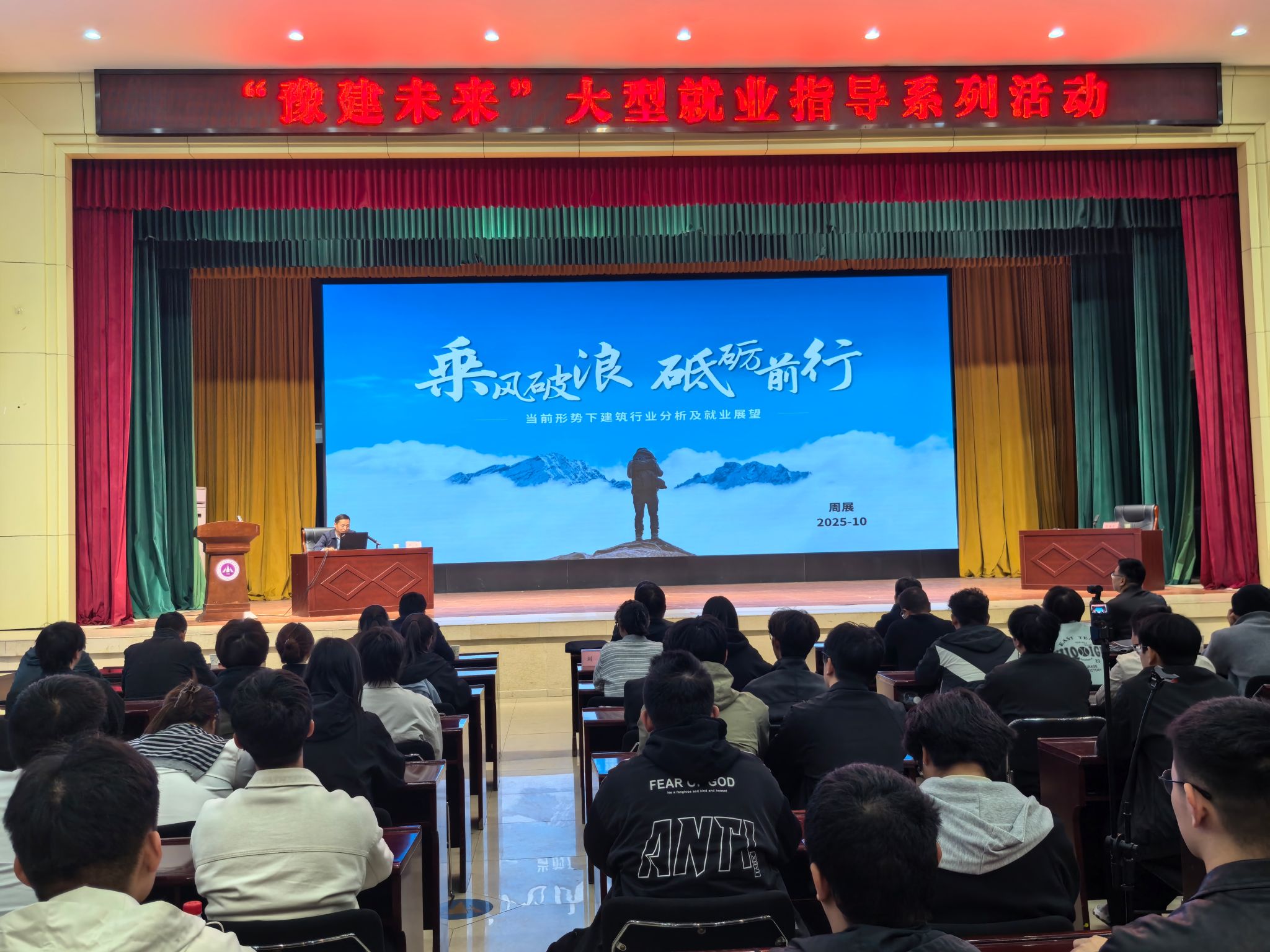 为积极应对建筑行业转型升级对人才提出的新要求,引导学生认清就业形势、明晰就业方向,2025年11月4日,河南省建设教育协会“豫建未来”大型就业指导系列活动在我校大学生活动中心成功举办。本次活动由河南省建设教育协会、河南广播电视台大象新闻共同主办,土木与交通工程学院承办。