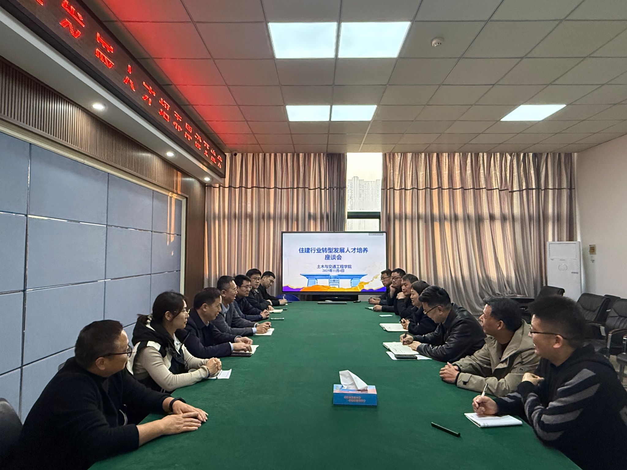 2025年11月4日下午,土木与交通工程学院在大学生活动中心308会议室召开“住建行业转型发展人才培养座谈交流会”。我院领导班子、教研室主任与河南省建设教育协会及多家企业代表共同参会。