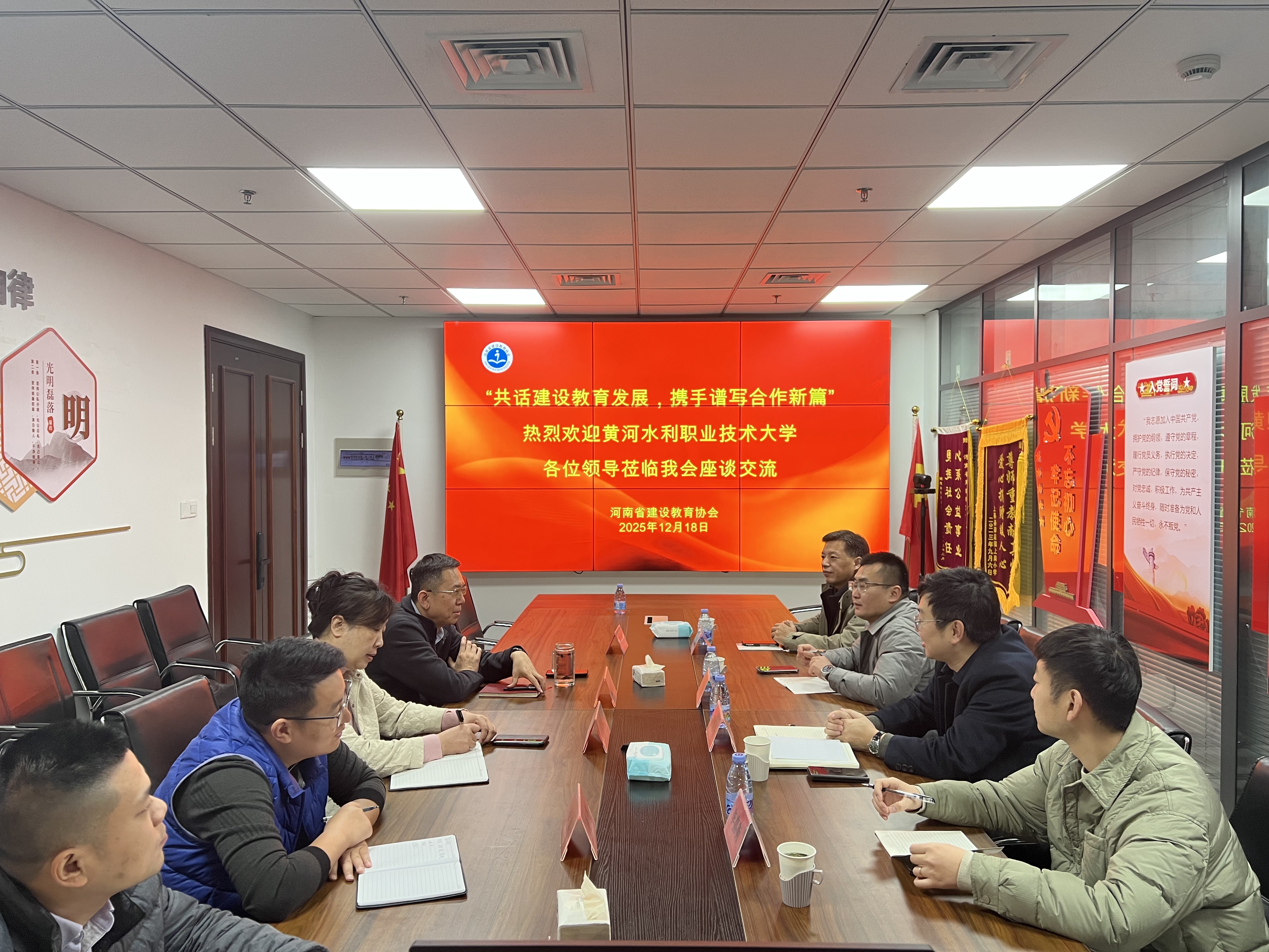 12月18日,我院党总支副书记孟宪金、副院长职保平、教研室主任曹磊、校企合作办公室主任李嘉衡一行赴河南省建设教育协会开展座谈交流。河南省建设教育协会会长崔恩杰、党支部书记陈晓燕、秘书长李苗热情接待并参与座谈。