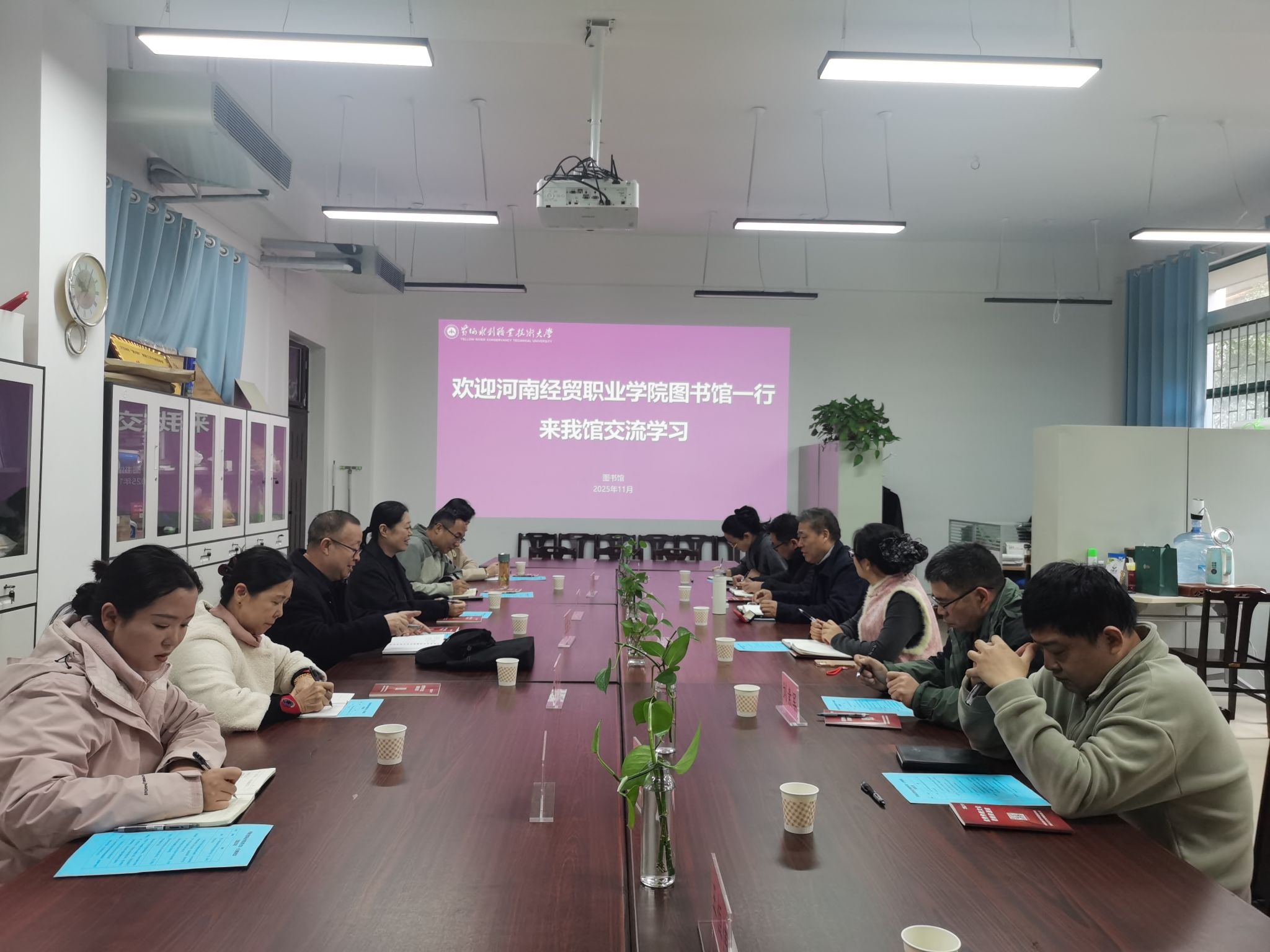 11月26日,河南经贸职业学院图书馆馆长娄冰一行六人到我馆交流学习。馆长樊建科、副馆长苏超和各科室负责人共同参与交流。