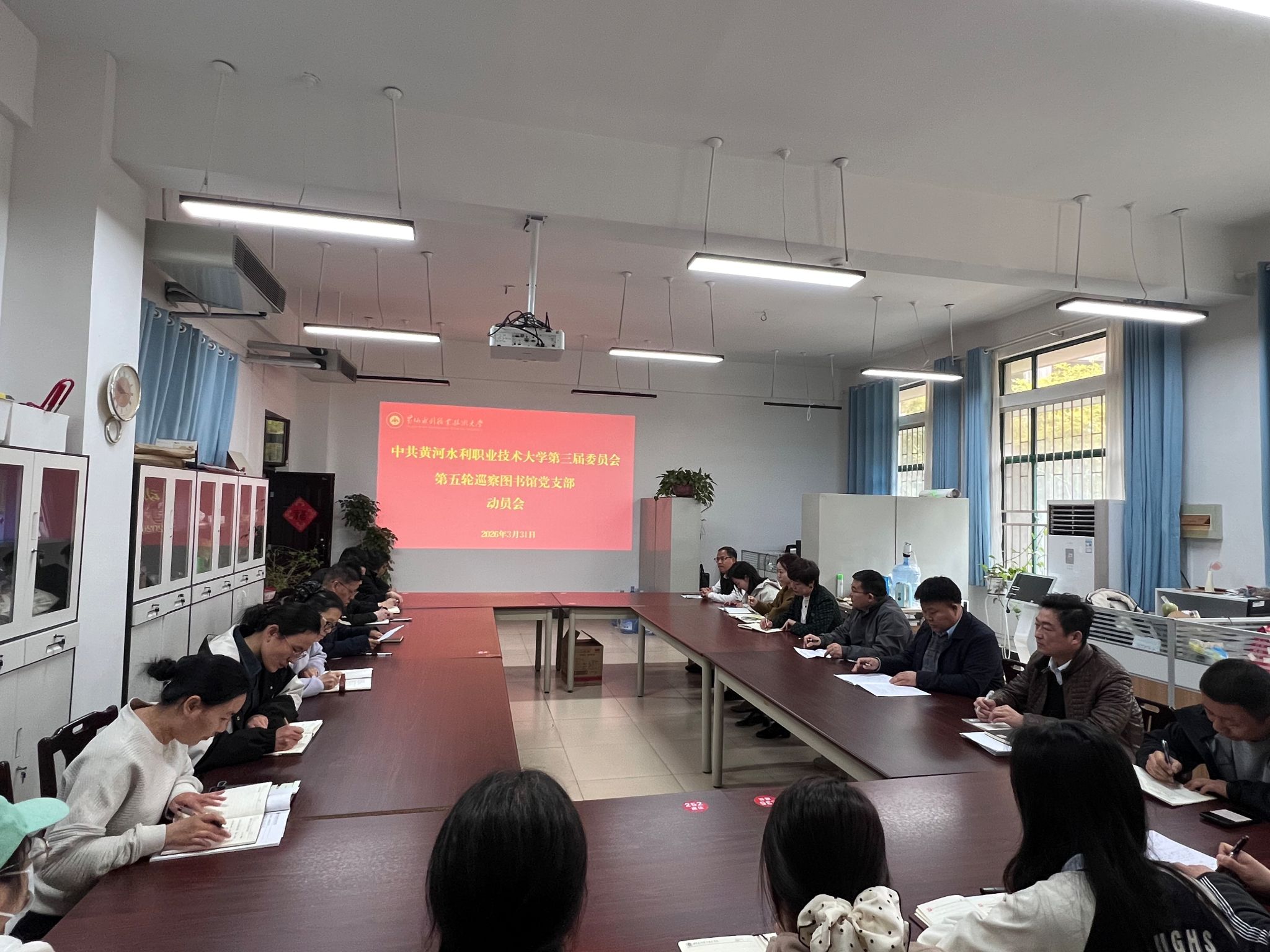 按照校党委关于巡察工作的统一部署,3月31日,学校第三届党委第五轮巡察工作组到图书馆党支部召开动员会,就第五轮巡察的工作任务、工作要求、工作方式和工作纪律等作出安排部署。党委巡察工作领导小组成员,巡察组全体成员,图书馆党支部领导班子成员及全体教职工参加会议。会议由图书馆党支部书记樊建科主持。