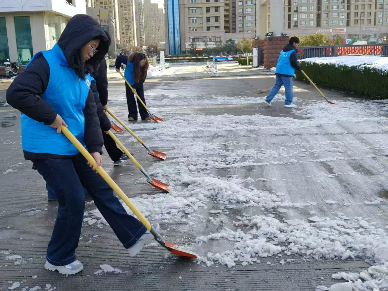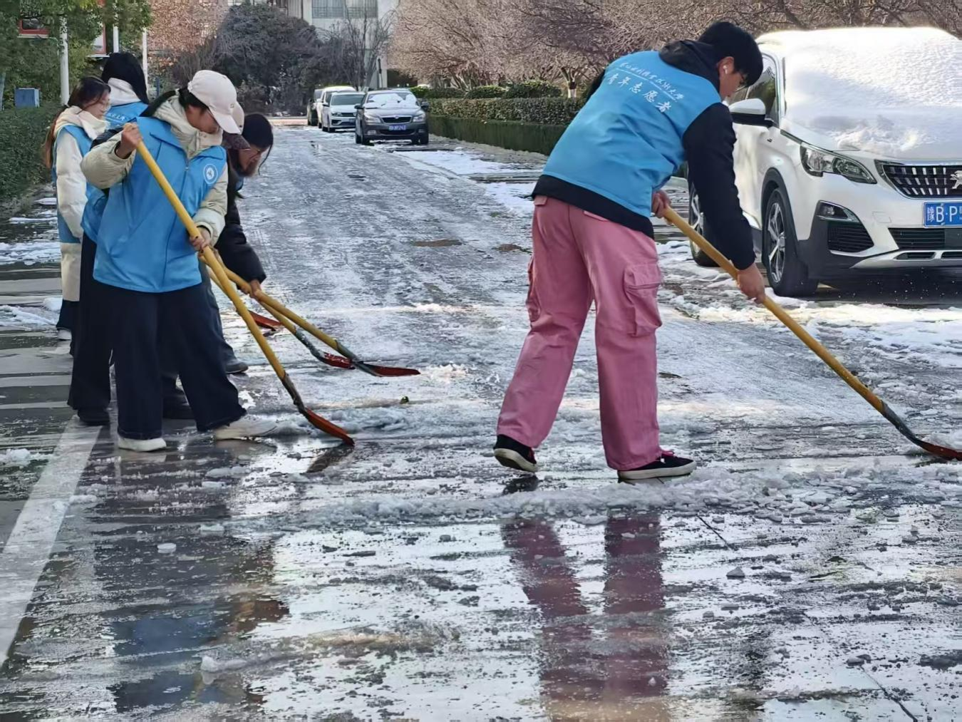 此次扫雪除冰活动,志愿者们以实际行动践行了“奉献、友爱、互助、进步”的志愿精神,在劳动中强化了服务意识与责任担当,进一步传递出校园温情,凝聚起共建平安、和谐、文明校园的青春力量。