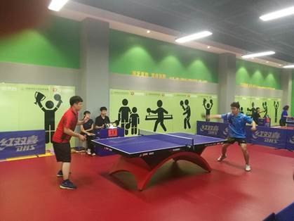 我校选手参加男子单打比赛(穿蓝衣者)