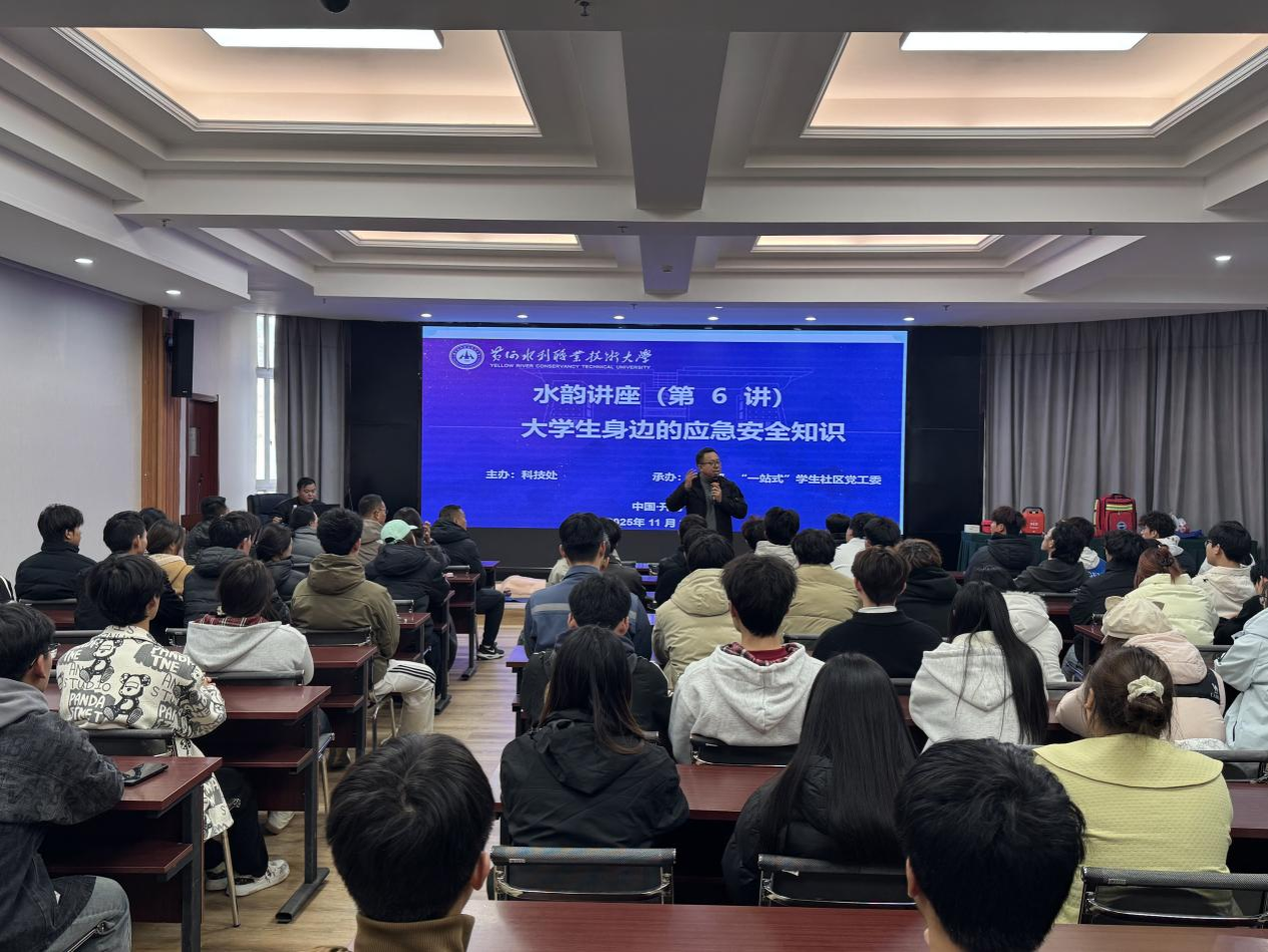 为进一步增强师生安全意识,普及应急安全知识,提升应对突发事件的自救互救能力,2025年11月25日,黄河水利职业技术大学特邀开封市蓝天救援队资深队员刘碧波老师来校,为师生们带来了一场内容丰富、实用生动的应急安全知识科普讲座。本次活动由黄河水利职业技术大学科技处主办,体育部、“一站式”学生社区党工委承办。体育部党支部书记王宁、“一站式”学生社区党工委党委副书记郭豪杰、体育部副主任冯建、教研室主任熊西宇、党支部宣传委员刘建民、党支部组织委员段然、马琳娜应邀出席。