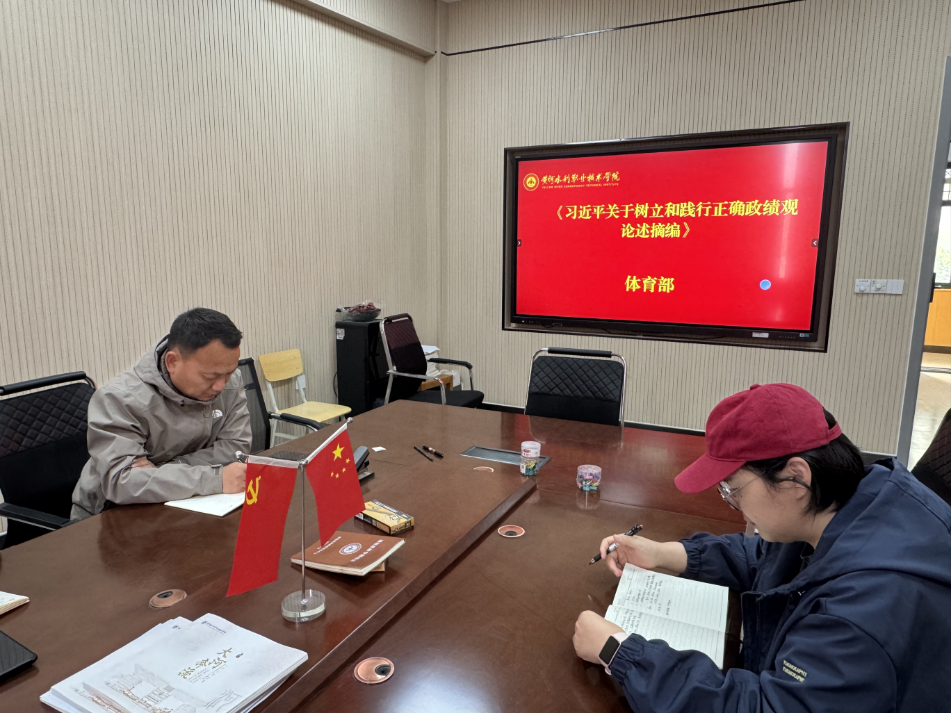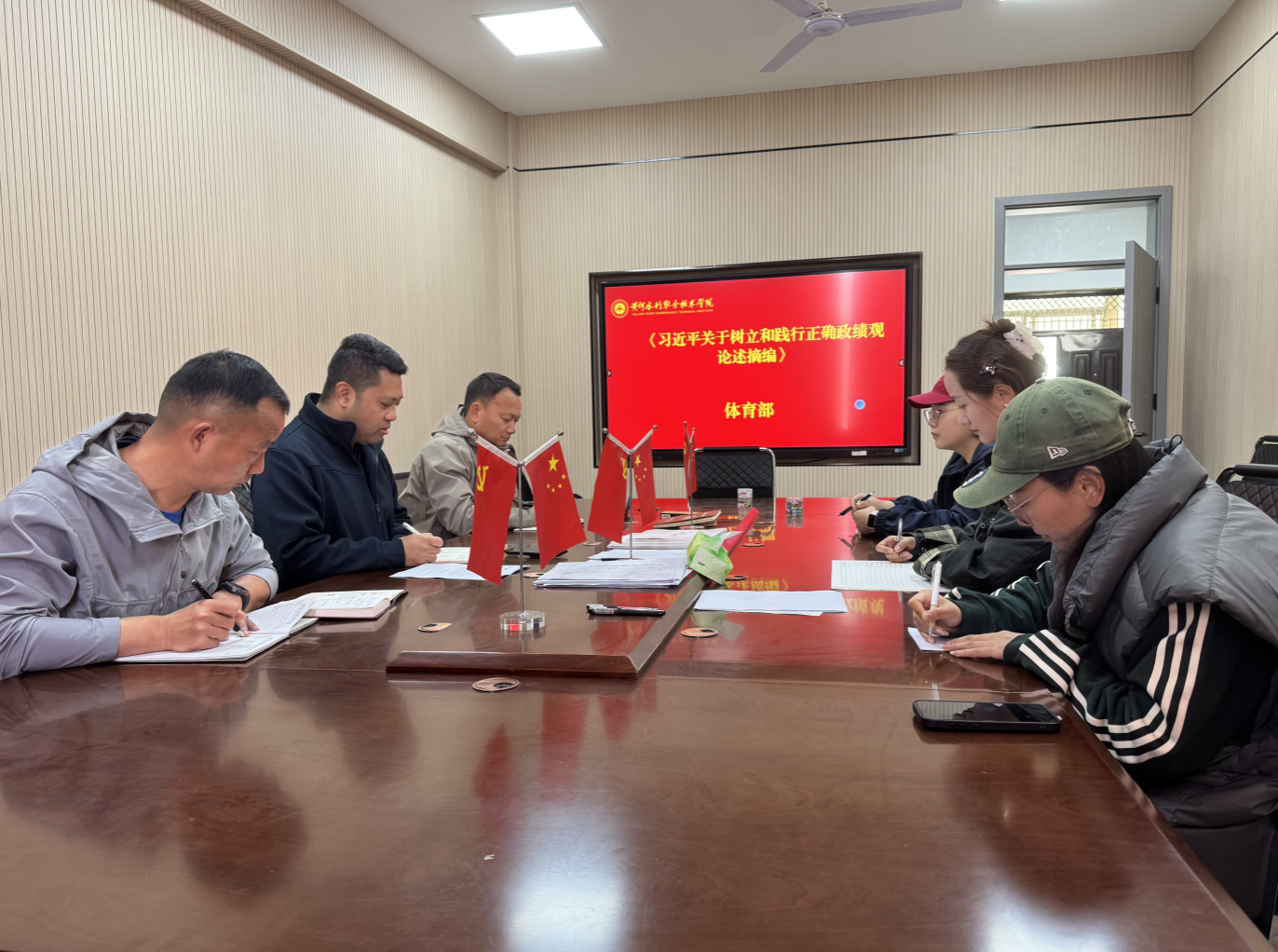 同时,部门充分利用内部宣传栏、工作群,推送正确政绩观学习资料、理论解读文章、先进典型事迹,营造全员学习、全面践行的浓厚氛围,让正确政绩观深入人心,引导全体教职工以理论学习滋养初心、淬炼作风,以过硬的政治素养推动体育工作提质增效。
