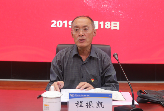 程振凯对我校党委高度重视、认真准备、精心谋划主题教育各项工作给予充分肯定。他强调,搞好第二批主题教育,对于用习近平新时代中国特色社会主义思想统一全党思想和行动,引导基层党员干部自觉增强“四个意识”、坚定“四个自信”、做到“两个维护”,深入贯彻落实党中央重大决策部署和习近平总书记重要指示批示,把党的十九大确定的目标任务落到实处,具有十分重要的意义。就进一步落实好主题教育的各项任务,程振凯提出六点要求:一是要提升政治站位。要增强搞好主题教育的政治责任感和使命感,以更加务实的作风和有效的举措抓紧抓实抓到位,确保主题教育取得实实在在的成效。二是要把握总体要求。坚持抓思想认识到位、抓检视问题到位、抓整改落实到位、抓组织领导到位,充分借鉴运用第一批主题教育好经验,结合学校实际,注重解决实际问题,注重开门搞教育,让广大师生切实感受到主题教育带来的新变化新成效。三是要突出重点对象。学校各级领导班子和班子成员是重点对象,县处级以上领导班子和领导干部是“关键少数”,要坚持走在前、作表率,以身作则,率先垂范,在理论学习上先学一步、学深一层,在检视剖析上正视问题、刀刃向内、深挖根源,在整改落实上主动担责、立行立改、真改实改,以更高标准、更严要求全面落实主题教育各项任务。四是要加强分类指导。坚持一切从实际出发,找准着力点和切入点,聚焦为党育人、为国育才,突出党的政治建设,紧扣立德树人根本任务,开展学习、深入调研,着重解决学校工作存在的问题。结合学校实际,统筹把握校级领导班子、中层领导班子和教工党员、学生党员等不同特点,充分利用各种平台载体,扎实推进学校主题教育取得实实在在成效。五是要解决突出问题。要在深入学习、提高认识的同时,坚持问题导向,奔着问题去、盯着问题改,把问题找实、把根源挖深,把功夫下在解难题、抓落实上,要坚持发扬斗争精神,立行立改,上下联动,真刀真枪既解决思想上的问题又解决工作上的问题。六是要落实主体责任。学校各级党组织要切实扛起政治责任,加强领导指导,精心组织推动,把中央部署和省委要求落实到每个支部、每名党员,层层压实责任,履行“一岗双责”,力戒形式主义、官僚主义,以好的作风确保主题教育取得好的效果。