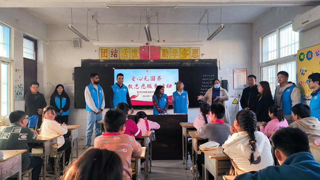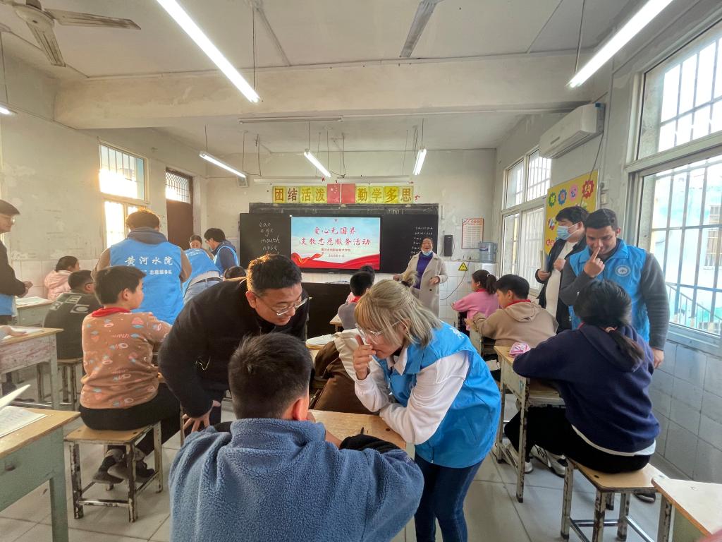 2023年11月7日下午,国际教育学院党总支书记楚万强带领学院师生志愿者一行来到开封市陈坟小学开展“爱心无国界 支教志愿服务”活动。来自巴基斯坦、阿尔及利亚、马达加斯加等地的留学生也积极参与,为陈坟小学的孩子们带去温暖。