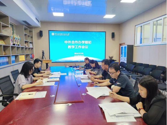 2025年9月9日下午,中外合作办学期初教学工作会在国际教育学院JX7408召开。国际教育学院副院长吴丰及相关负责人、专业所在二级学院教研室主任参加了本次会议。