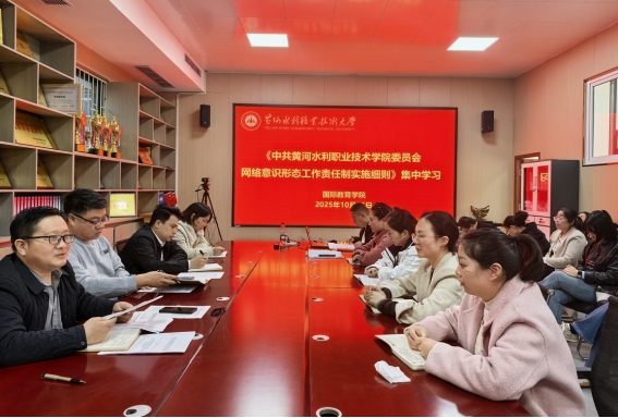 为贯彻落实《黄河水利职业技术大学2025年下半年政治理论学习及思想道德教育计划》学习要求,10月21日,国际教育学院组织教职工传达学习《中共黄河水利职业技术学院委员会意识形态工作责任制实施细则》和《中共黄河水利职业技术学院委员会网络意识形态工作责任制实施细则》,引导教师切实将意识形态工作责任制贯穿立德树人全过程,切实肩负起意识形态工作的重任,为学校高质量发展营造良好的思想舆论环境。