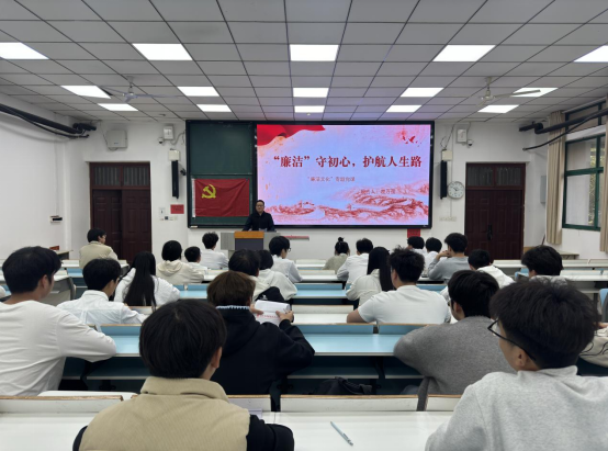11月11日下午,学生国际教育支部在JX6101教室开展“廉洁守初心,护航人生路”专题党课,此次党课由院党总支书记楚万强讲授。
