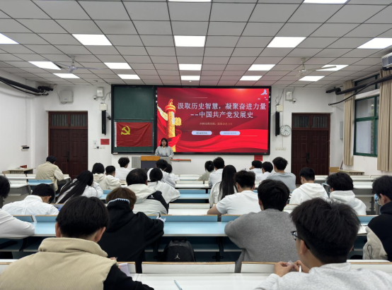 11月11日下午,学生国际教育支部书记黄海燕在JX6101教室讲授“汲取历史智慧,凝聚奋进力量”中国共产党发展史专题党课。