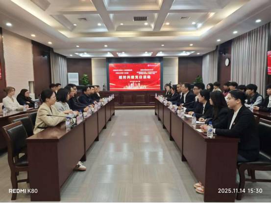 为深入贯彻落实新时代党的建设总要求和新时代党的组织路线,深化党建示范创建与质量创优工作,充分发挥基层党支部的战斗堡垒作用和党员的先锋模范作用,2025年11月14日下午,国际教育学院教工国际教育党支部与学生国际教育党支部同中国化学工程第十一建设有限公司中原分公司第一党支部联合开展了以“党建联建聚合力,校企同心促发展”为主题的结对共建党日活动。双方党员代表共计20余人参加了此次活动。