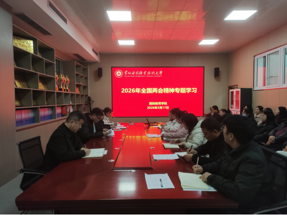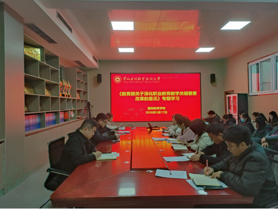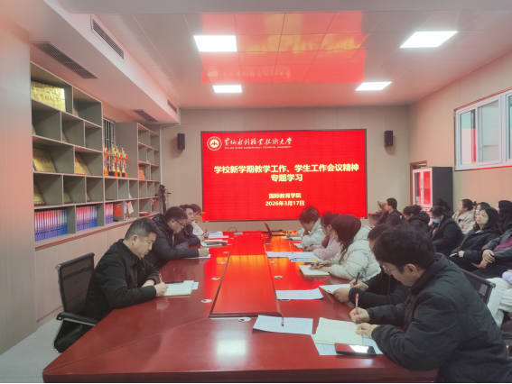 为贯彻落实《黄河水利职业技术大学2026年上半年教职工政治理论学习及思想道德教育计划》学习要求,3月17日,国际教育学院组织教职工传达学习学校2026年度工作务虚会精神,学校新学期教学工作、学生工作会议精神,2026年全国两会精神和《教育部关于深化职业教育教学关键要素改革的意见》,引导学院教师坚持以习近平新时代中国特色社会主义思想为指导,深入贯彻党的二十大和二十届历次全会及全国教育大会精神,落实立德树人根本任务,为推动教育高质量发展、建设教育强国贡献力量。